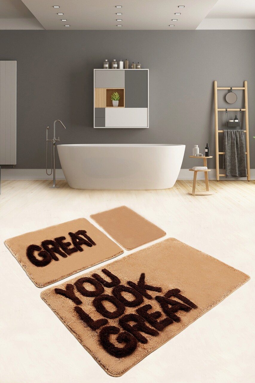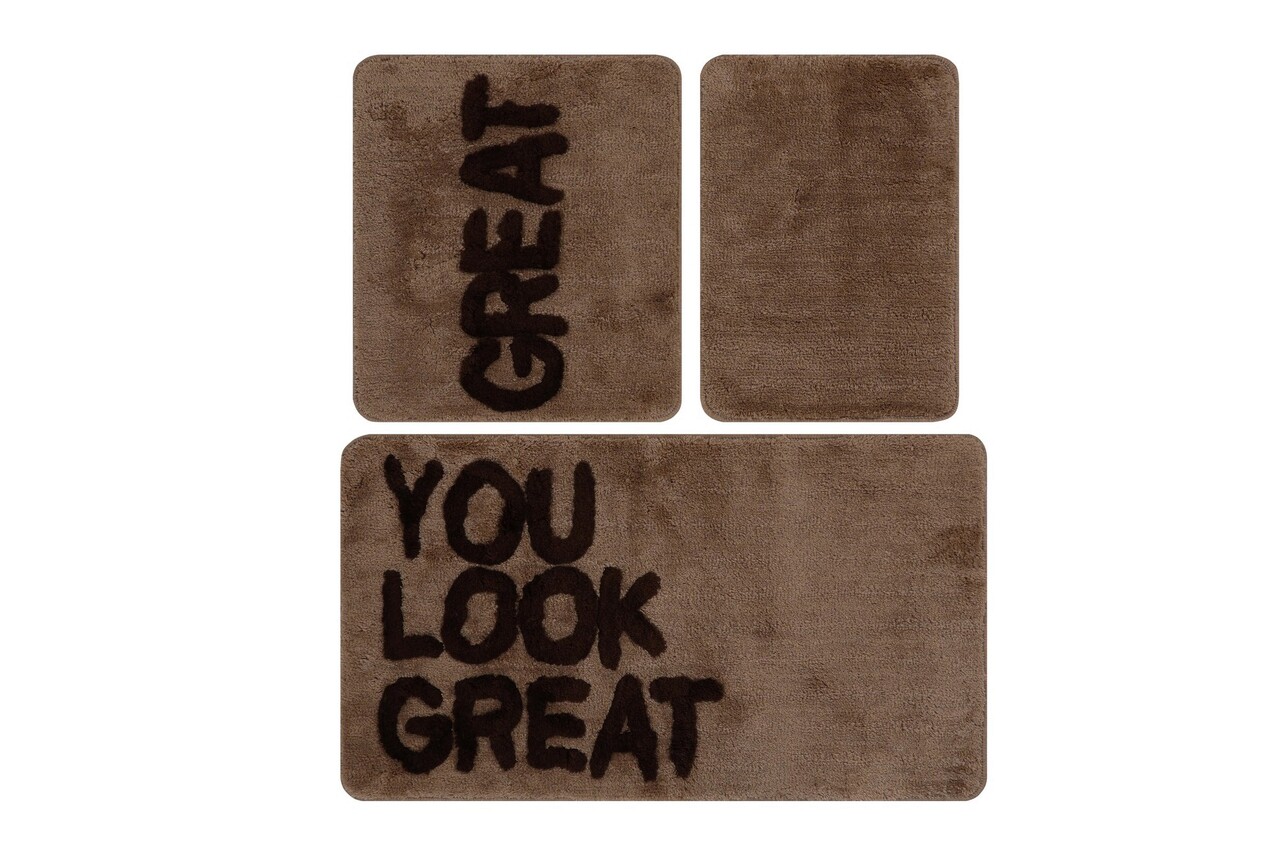 Set covoraș de baie (3 bucăți), Chilai, Great, Acril, Maro