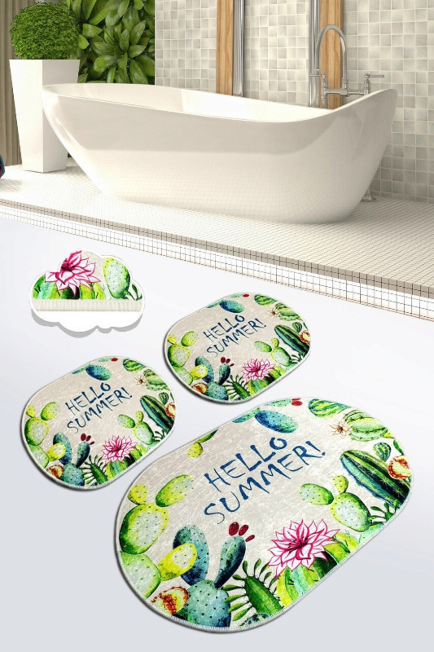 Set covoraș de baie (3 bucăți), Chilai, Hello Summer, Catifea, Multicolor
