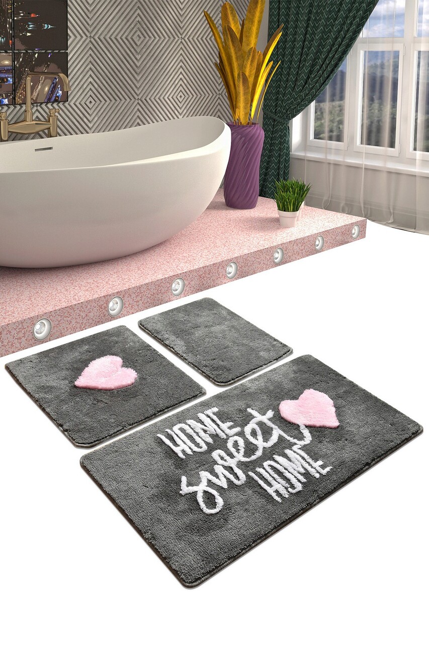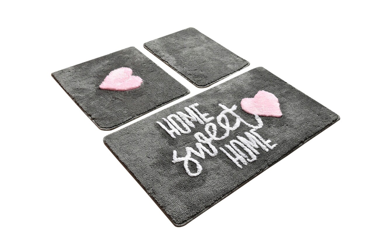 Set covoraș de baie (3 bucăți), Chilai, Home Sweet Home, Acril, Multicolor