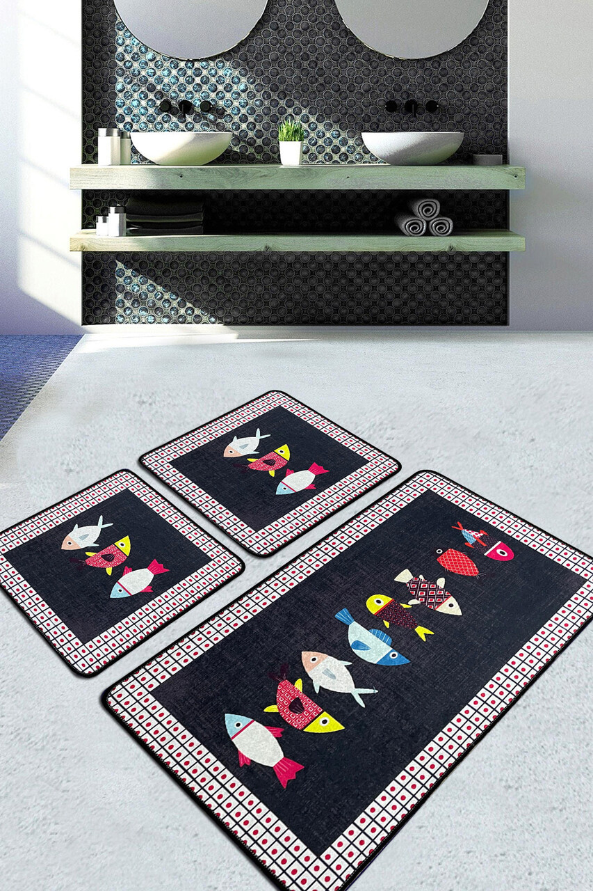 Set covoraș de baie (3 bucăți), Chilai Home, Swing of Fish Djt, Poliester, Multicolor