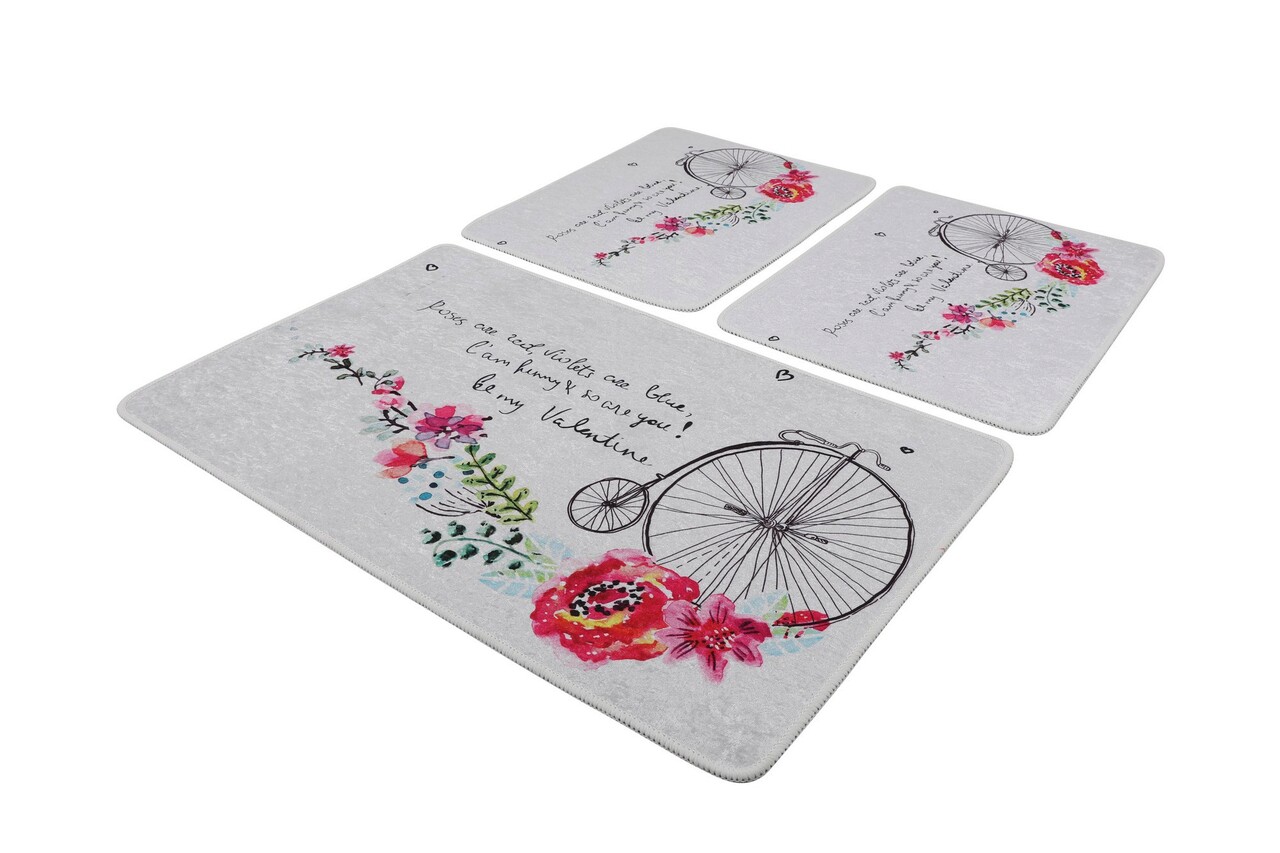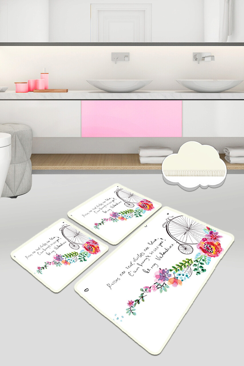 Set covoraș de baie (3 bucăți), Chilai, Monowheel, Catifea, Multicolor