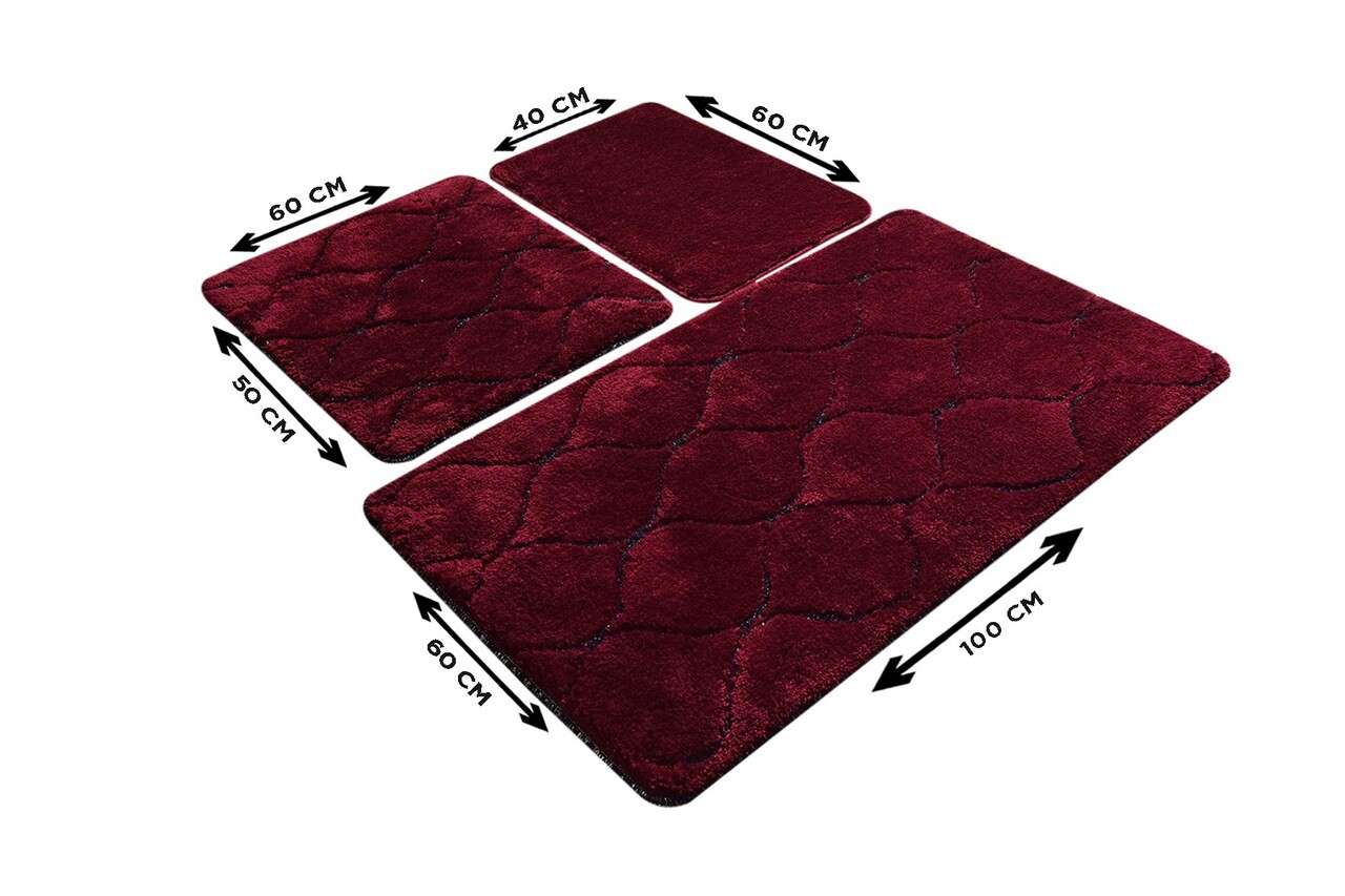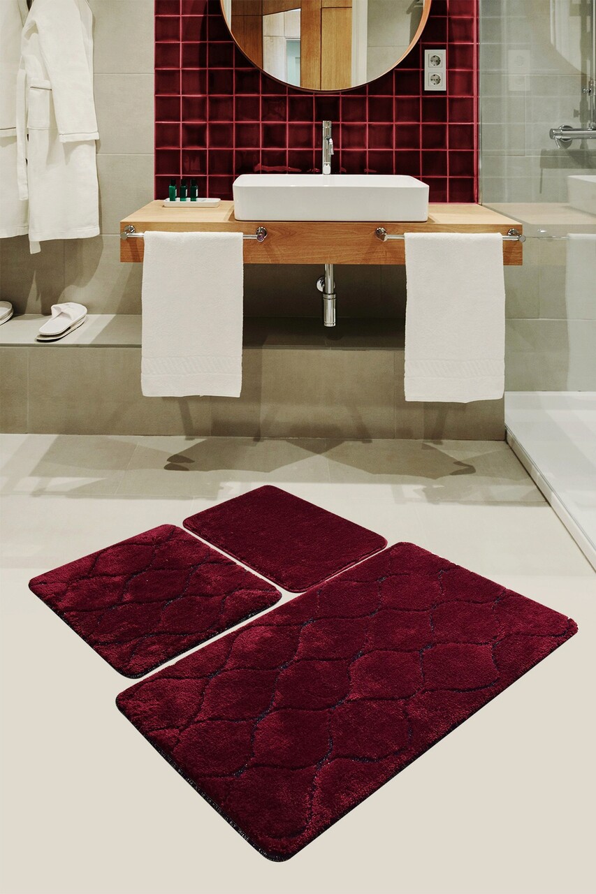 Set covoraș de baie (3 bucăți), Chilai, İnfinitiy, Acril, Visiniu