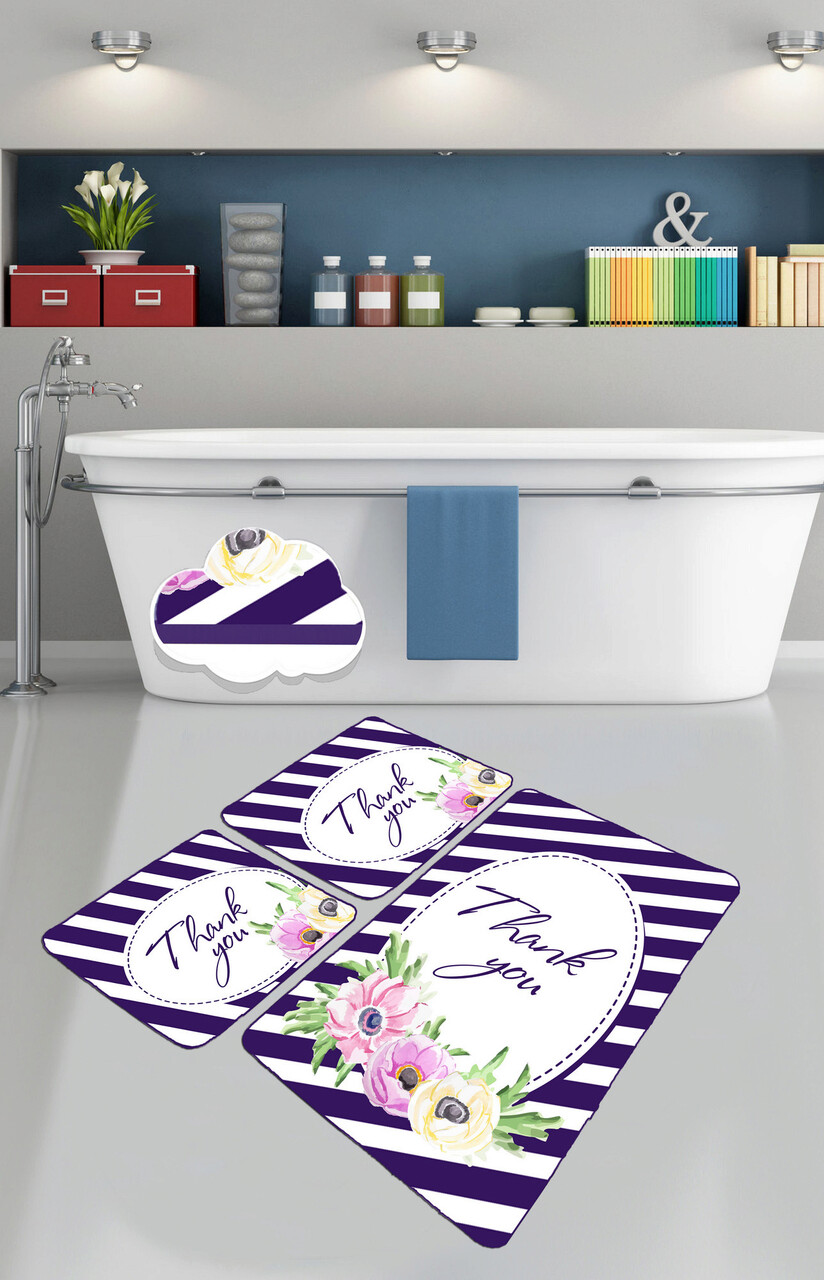 Set covoraș de baie (3 bucăți), Chilai, Thank You, Catifea, Multicolor