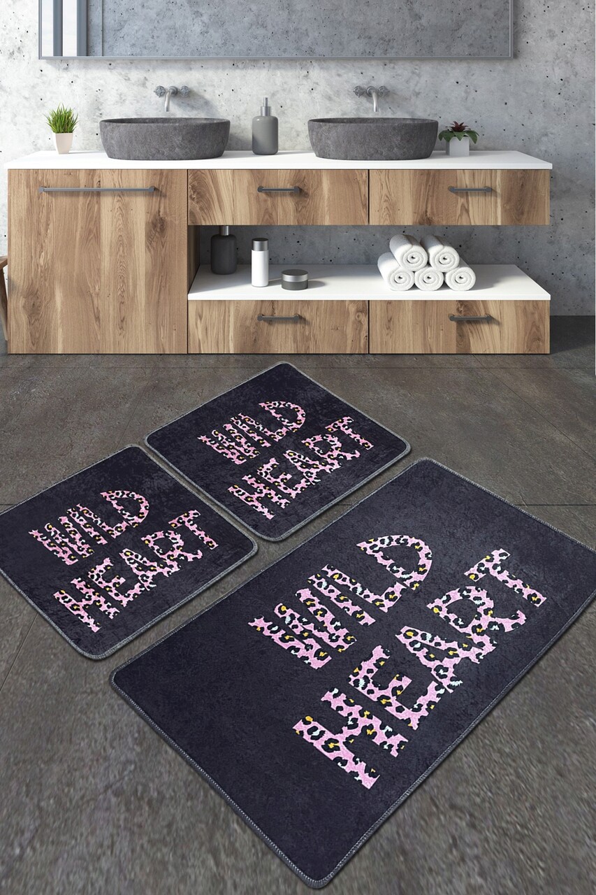 Set covoraș de baie (3 bucăți), Chilai, Wild Heart Djt, Poliester, Multicolor