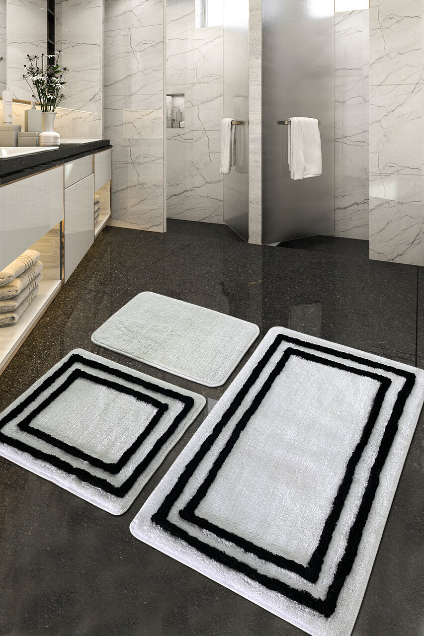 Set covoraș de baie acrilic (3 bucăți), Chilai Home, Duplici, Acril, Alb