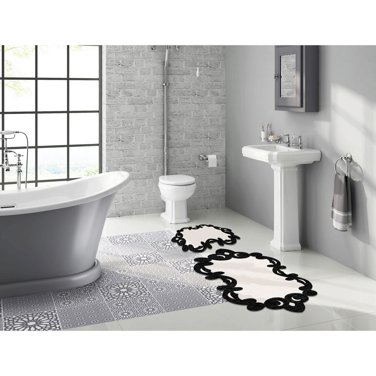 Set covorase de baie 2 piese, Alanur Home, 210FG41615SY, Poliester, Alb/Negru