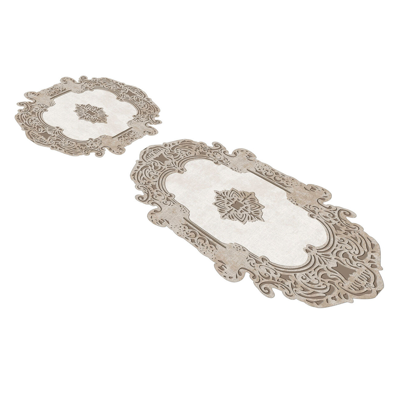 Set covorase de baie 2 piese, Alanur Home, 210FG41715KR, Poliester, Crem