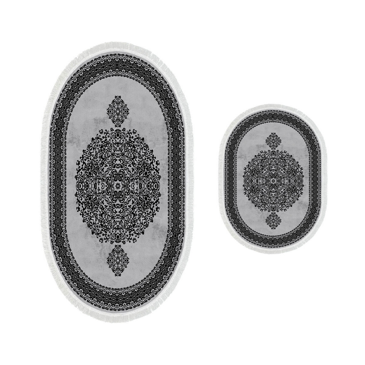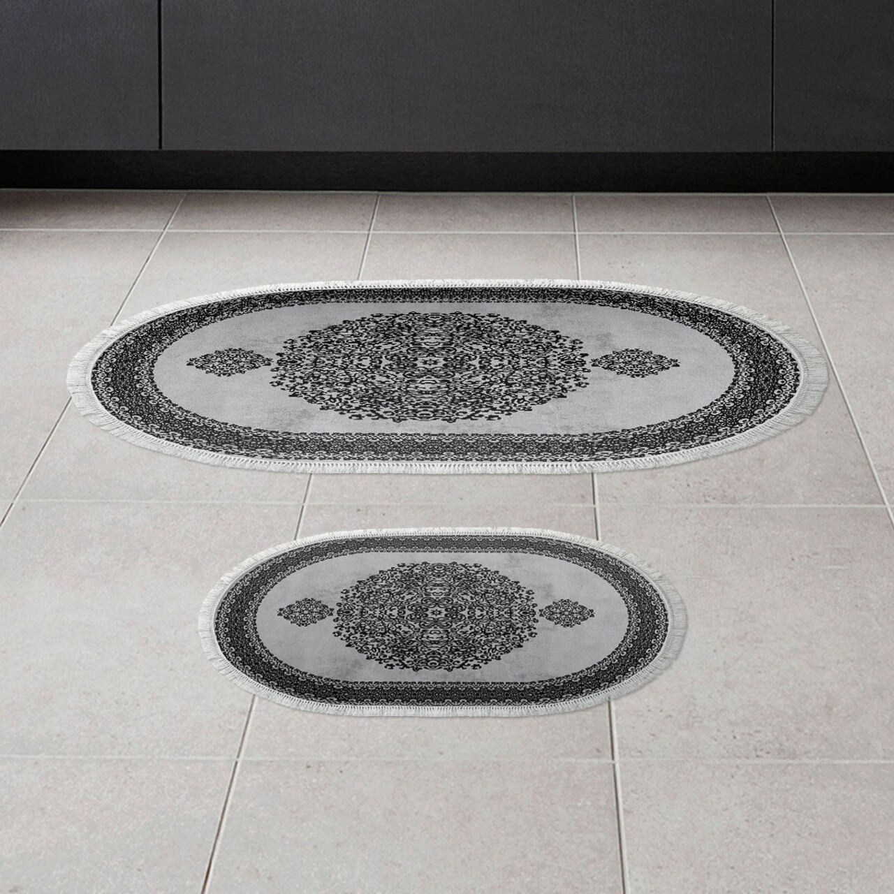 Set covorase de baie 2 piese, Alanur Home, 410602-O, Poliester, Gri