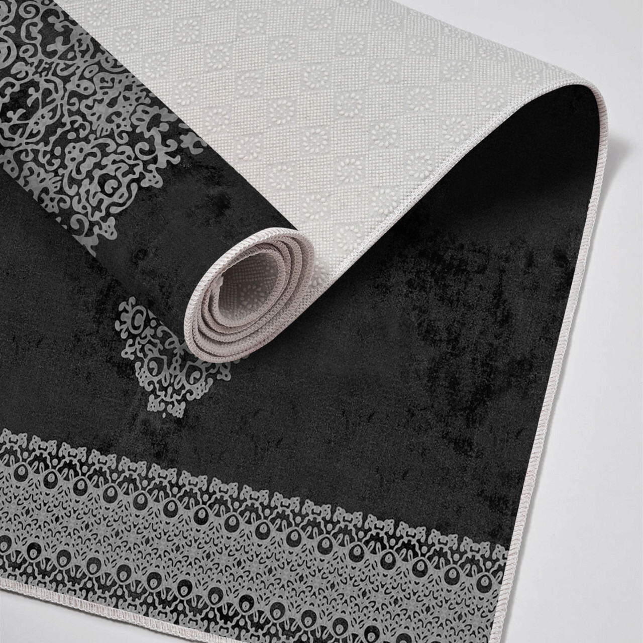Set covorase de baie 2 piese, Alanur Home, 510602, Poliester, Alb/Negru