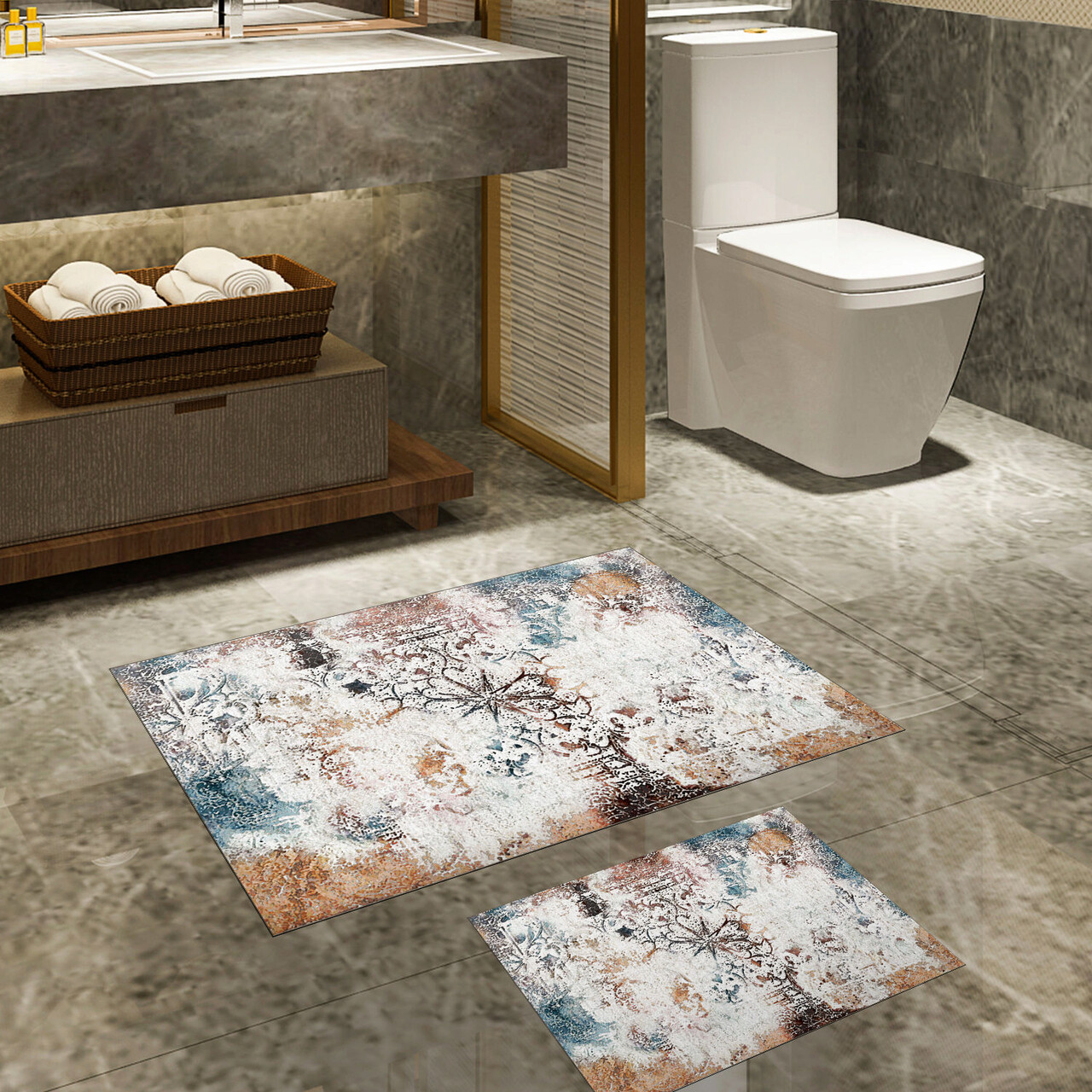 Set covorase de baie 2 piese, Alanur Home, 510609, Poliester, Multicolor
