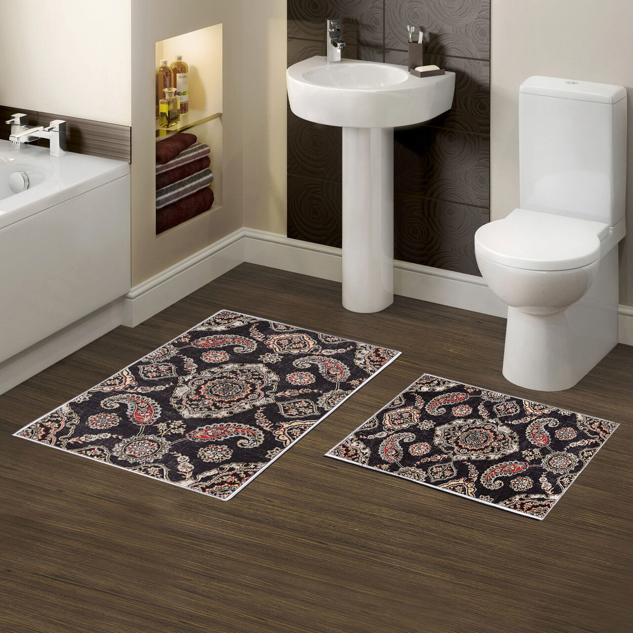 Set covorase de baie 2 piese, Alanur Home, KT445, Poliester, Multicolor
