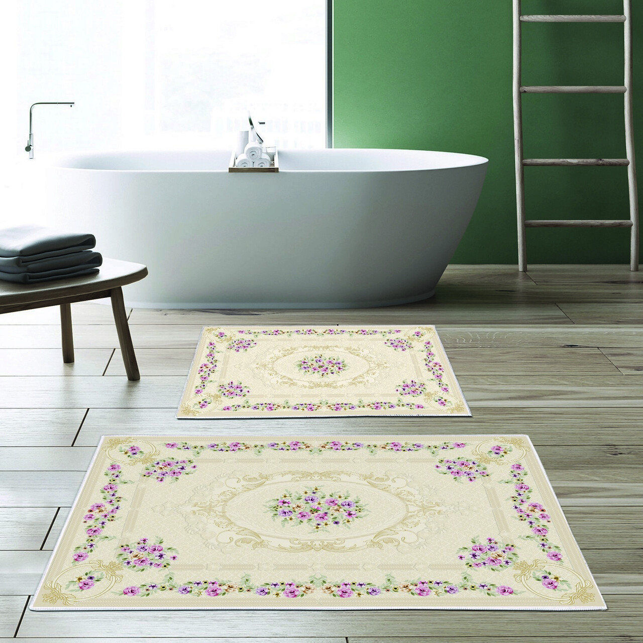 Set covorase de baie 2 piese, Alanur Home, KT484, Poliester, Multicolor
