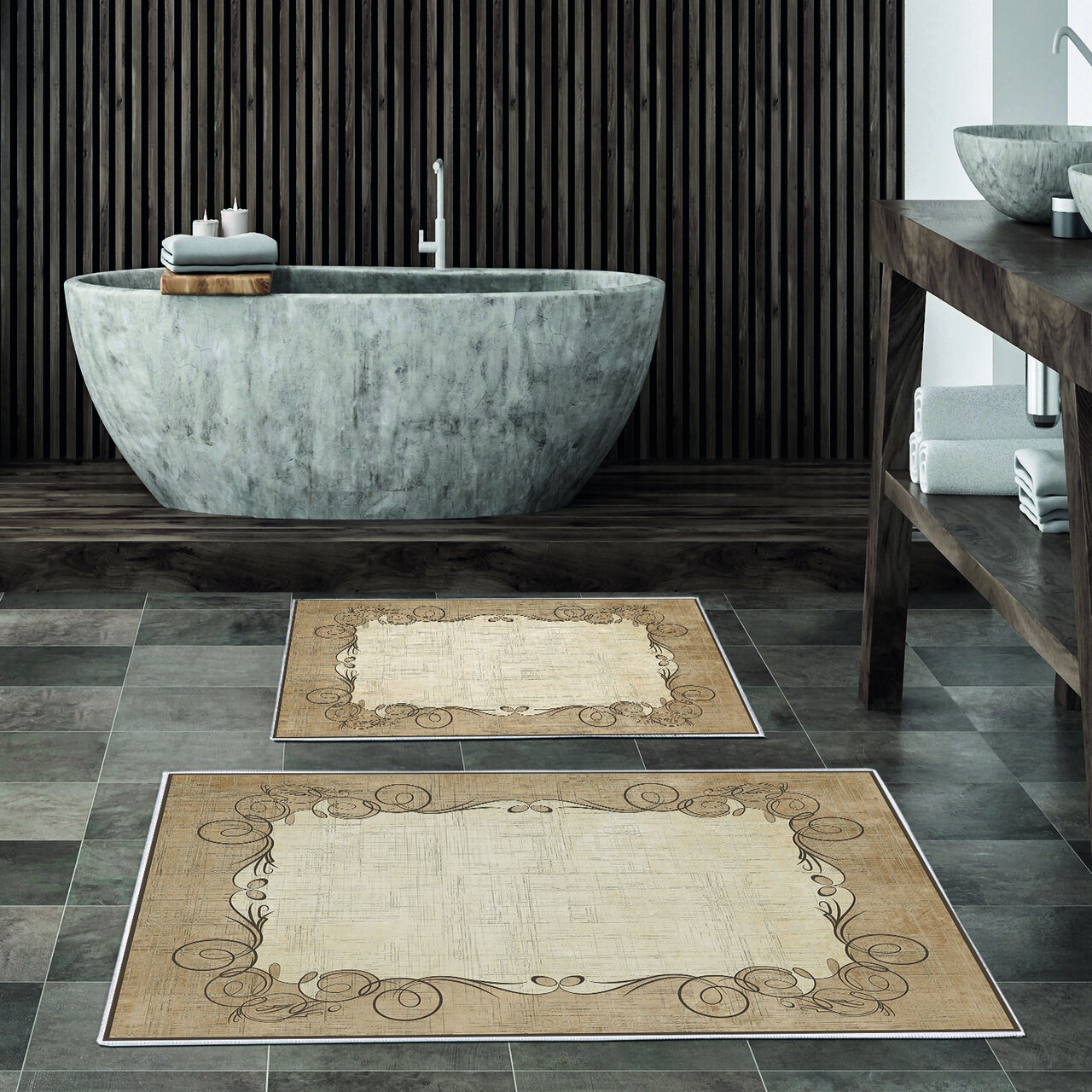 Set covorase de baie 2 piese, Alanur Home, KT486 v2, Poliester, Multicolor