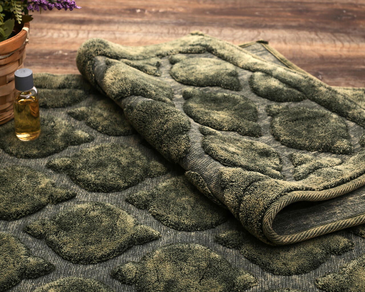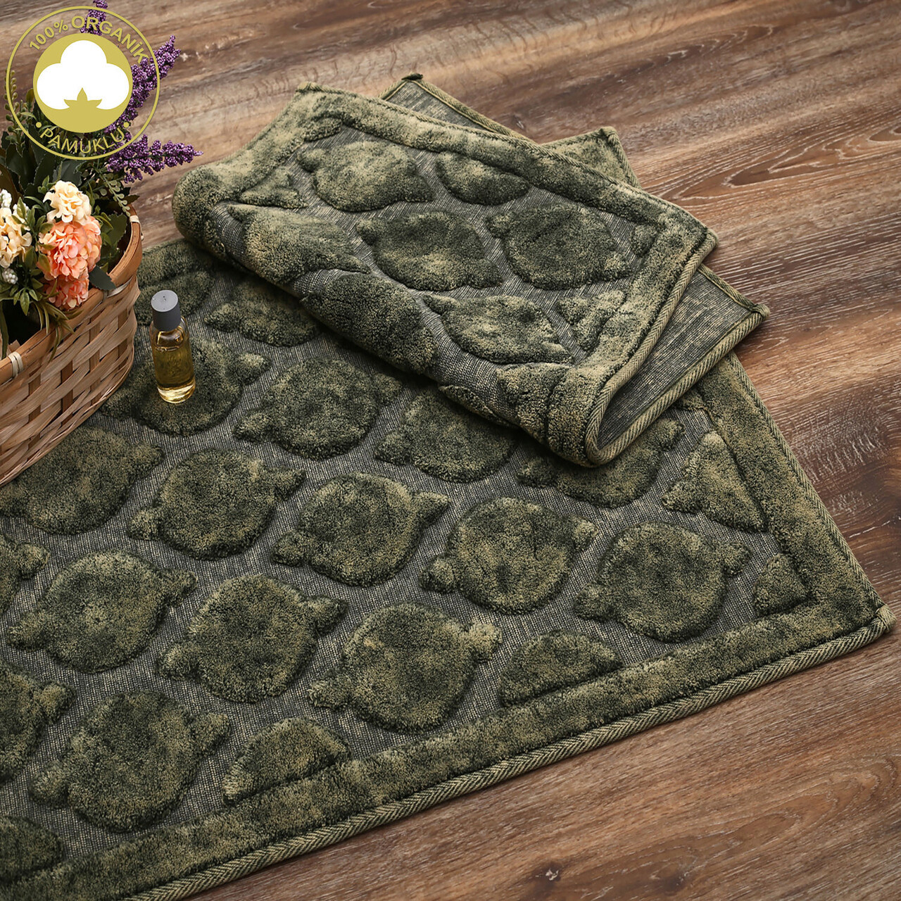 Set covorase de baie 2 piese, Alanur Home, Rüya, Bumbac, Verde