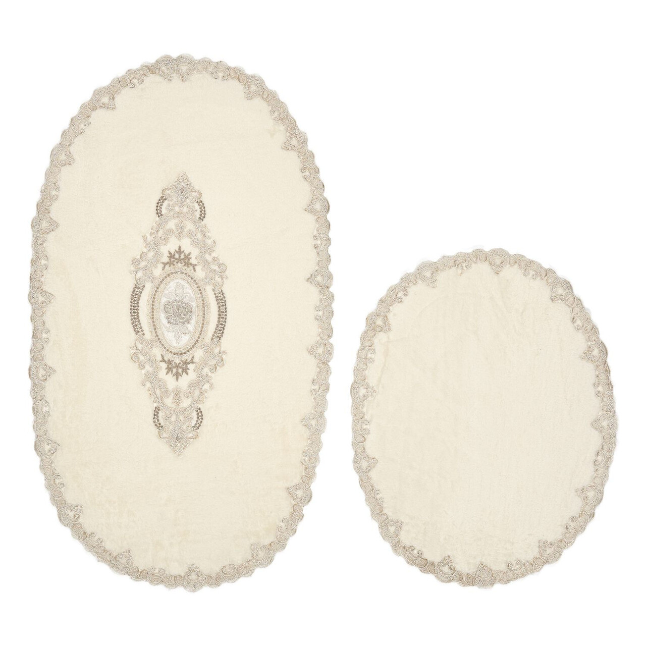 Set covorase de baie 2 piese, Alanur Home, Selonya Oval, Poliester, Crem