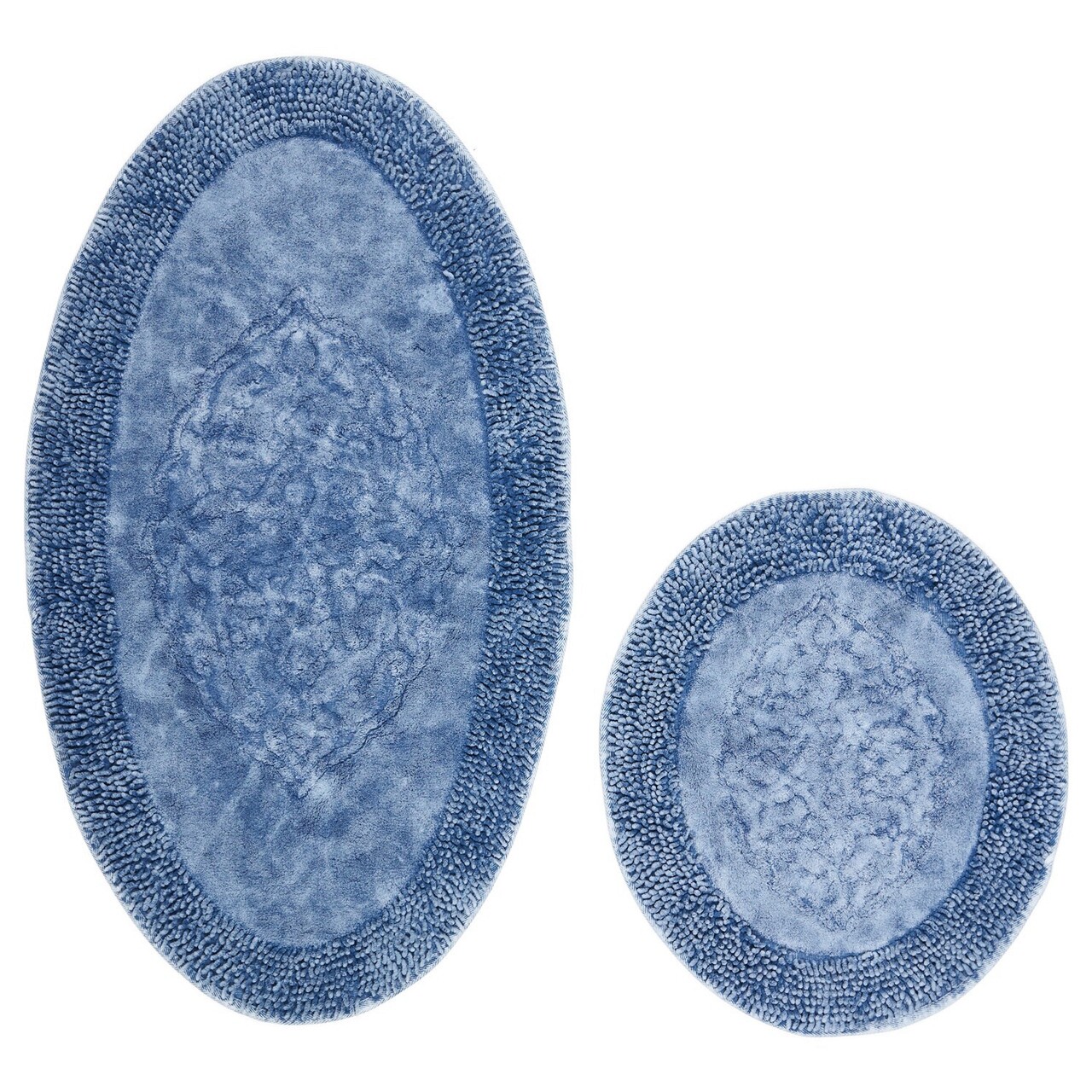 Set covorase de baie 2 piese, Alanur Home, Y-ZİGZAG-80X465VV000015, Bumbac, Albastru