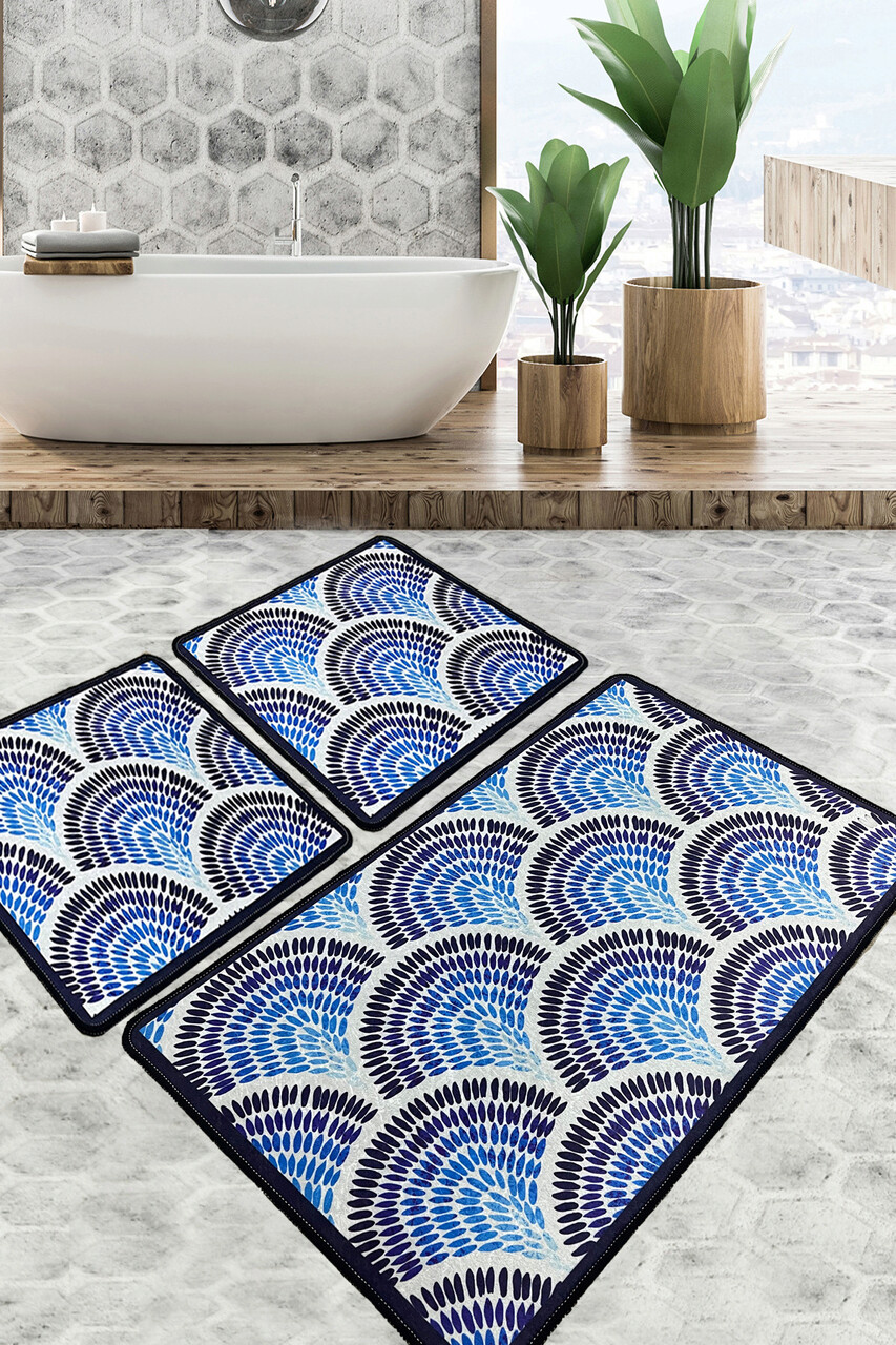 Set covorase de baie 2 piese, Chilai, Azul, Catifea, Multicolor