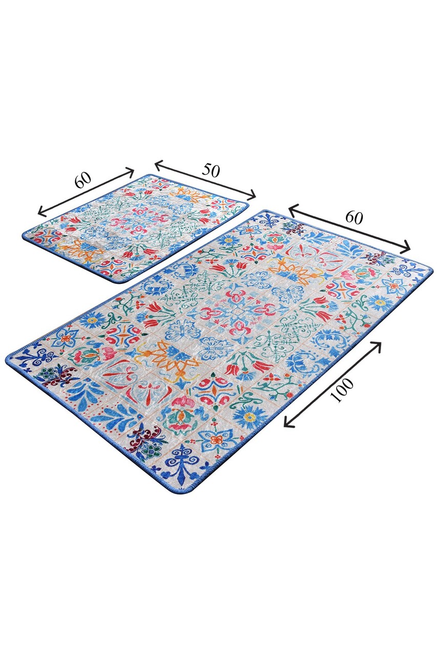 Set covorase de baie 2 piese, Chilai, Ceramica, Catifea, Multicolor