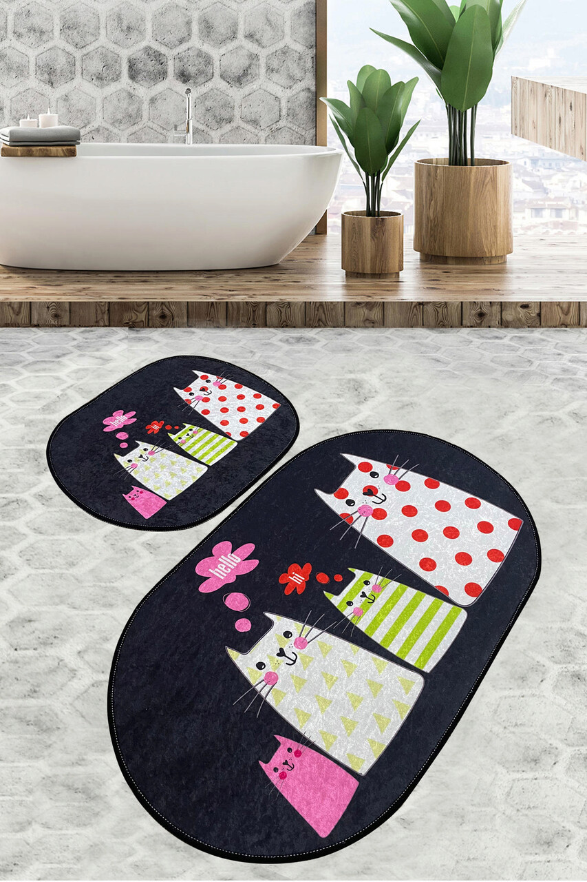 Set covorase de baie 2 piese, Chilai Home, Four Cats Djt, Poliester, Multicolor