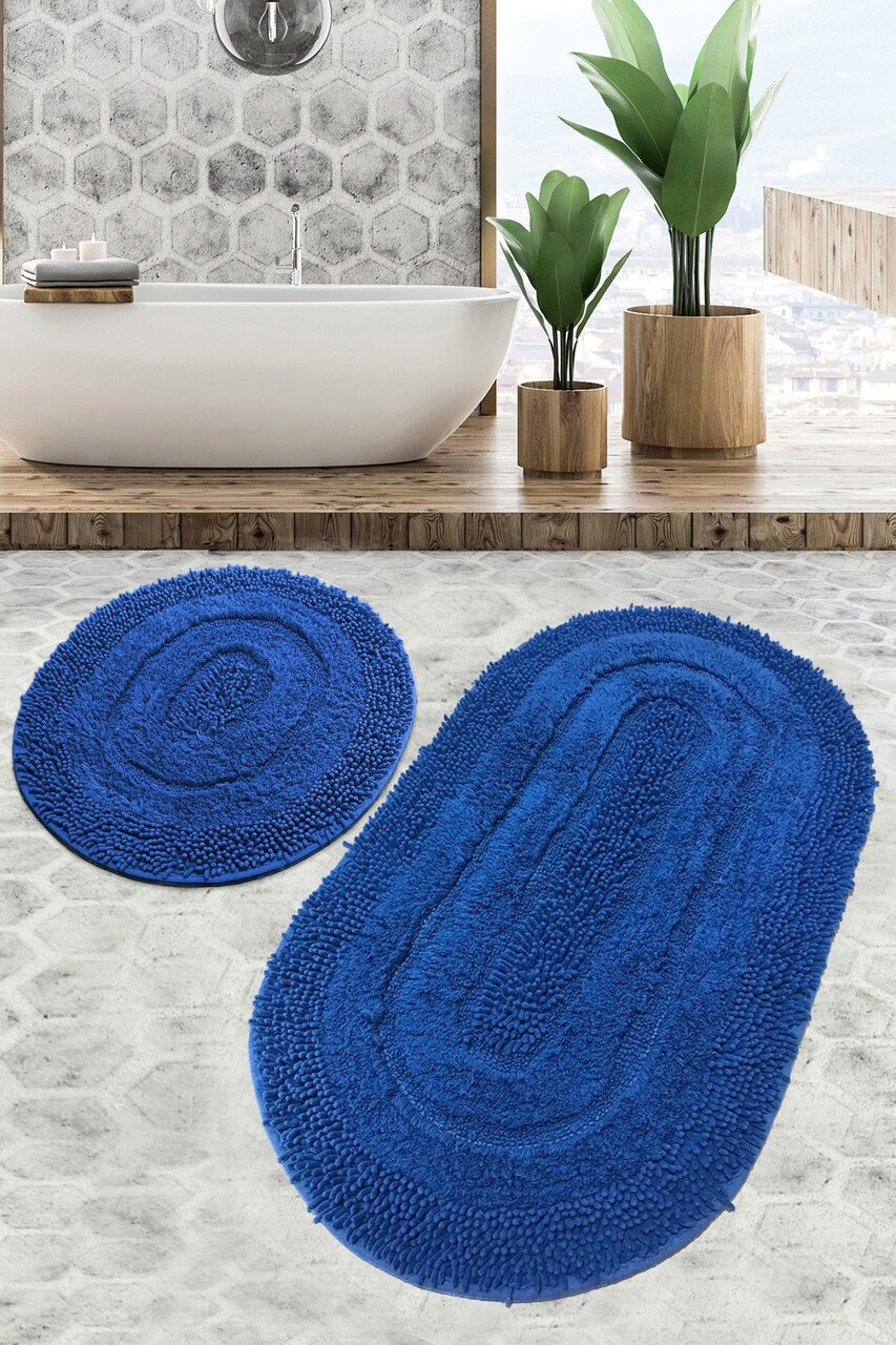 Set covorase de baie 2 piese, Chilai Home, Macoroni, Bumbac, Albastru