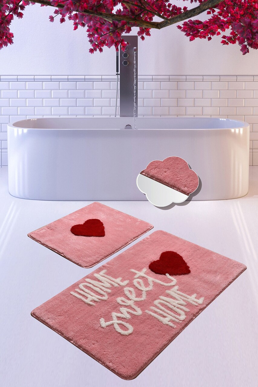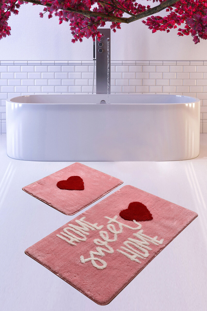 Set covorase de baie 2 piese, Chilai, Home Sweet Home, Acril, Roz