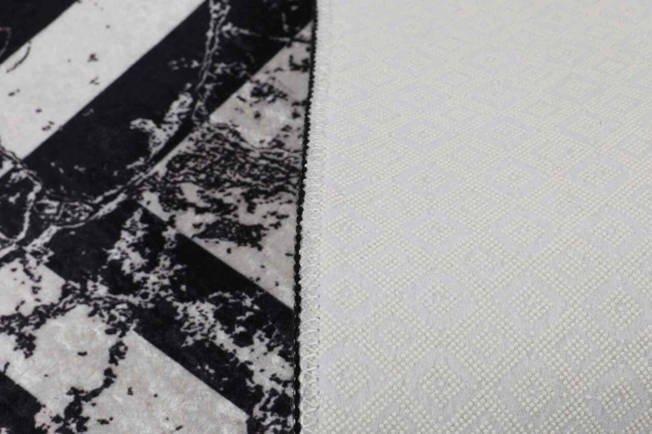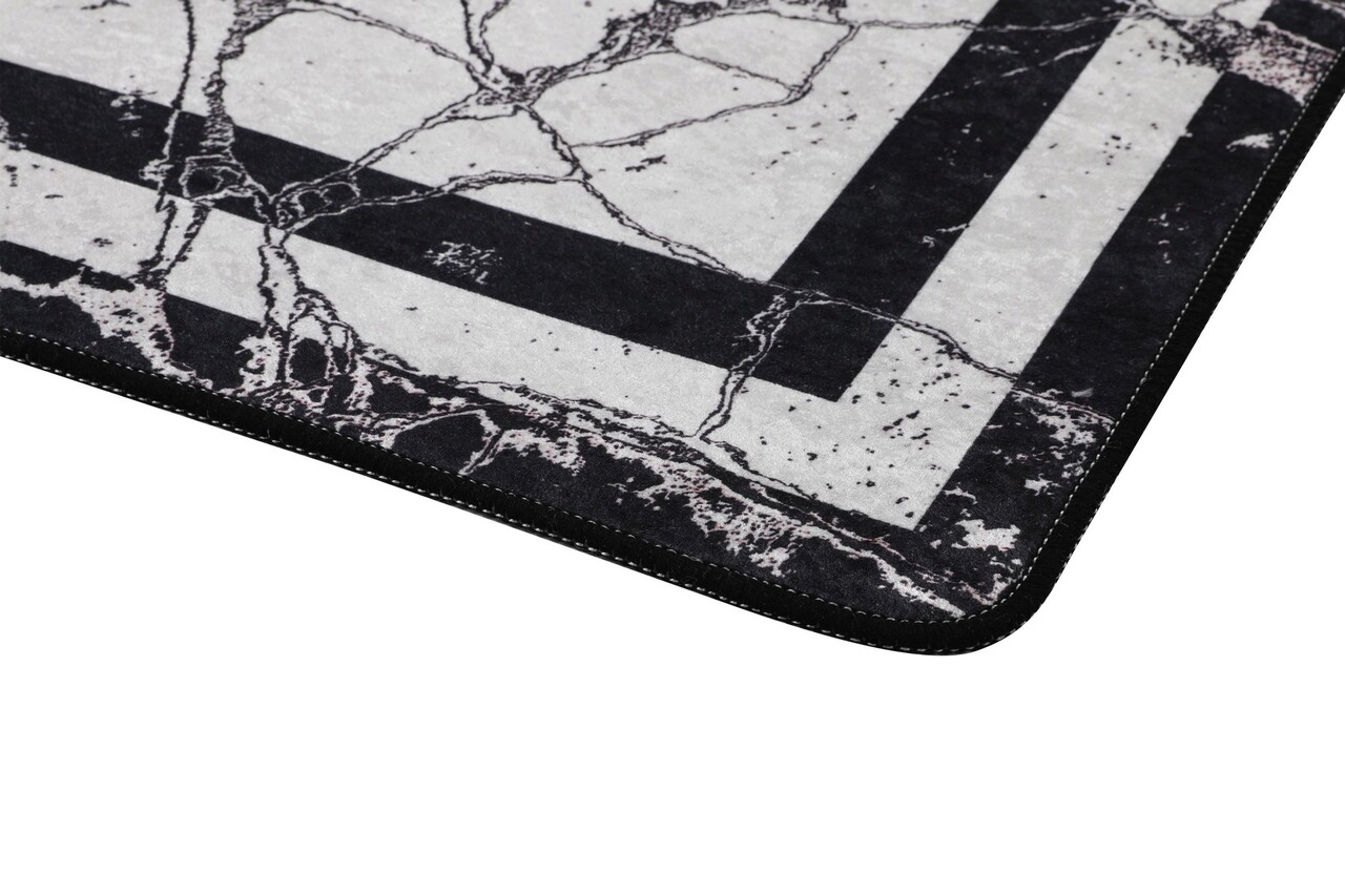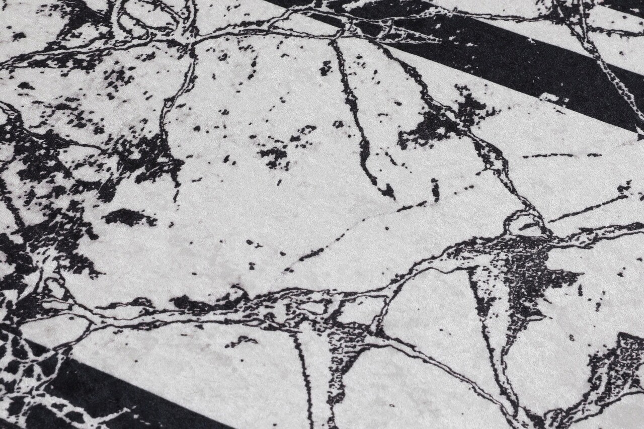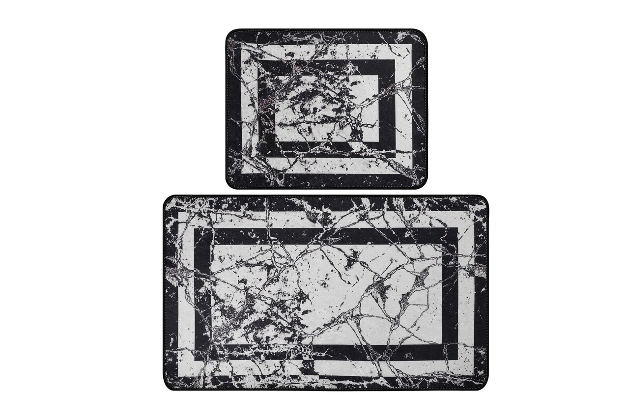 Set covorase de baie 2 piese, Chilai, Marmor, Catifea, Alb/Negru