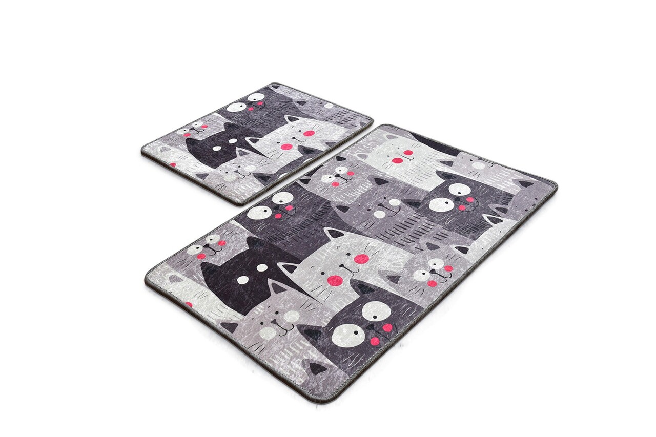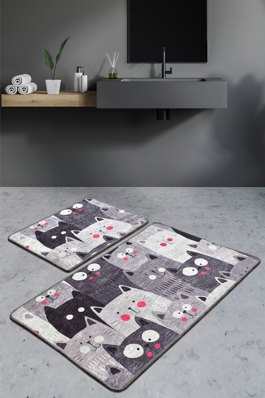 Set covorase de baie 2 piese, Chilai, Meow, Catifea, Multicolor