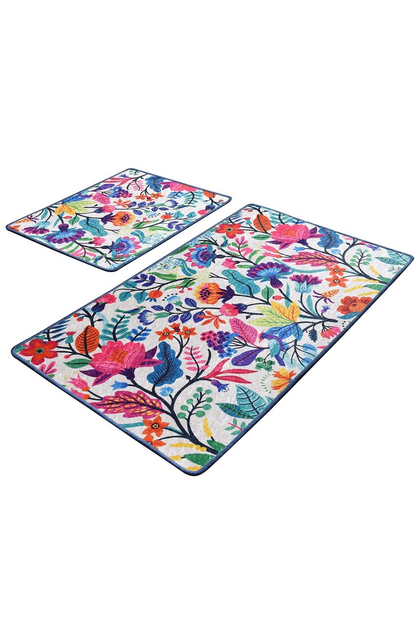 Set covorase de baie 2 piese, Chilai, Pictura, Catifea, Multicolor