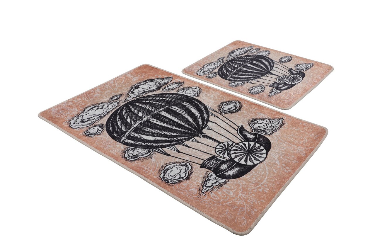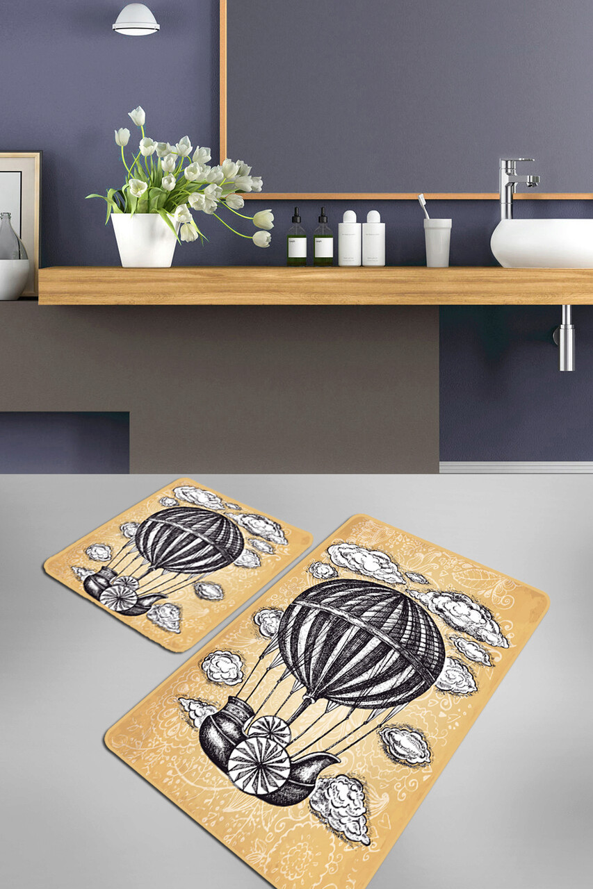 Set covorase de baie 2 piese, Chilai, Propeller, Catifea, Galben / Negru / Alb