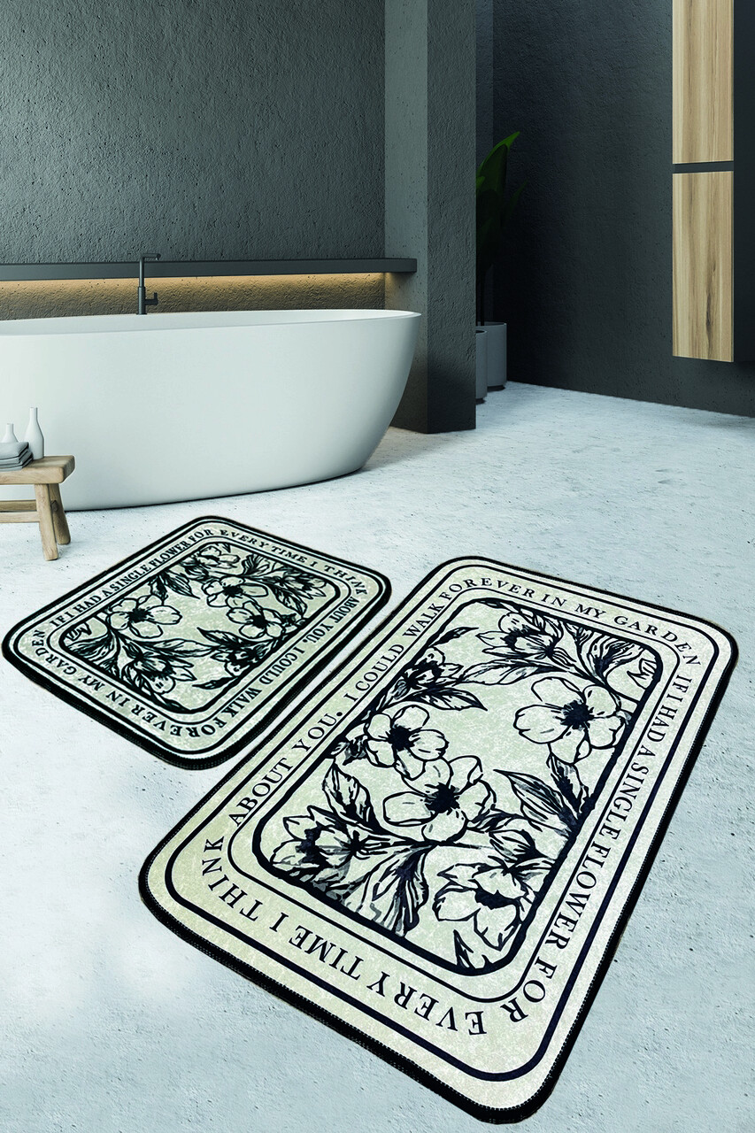 Set covorase de baie 2 piese, Chilai, Singleflo, Poliester, Crem/Negru