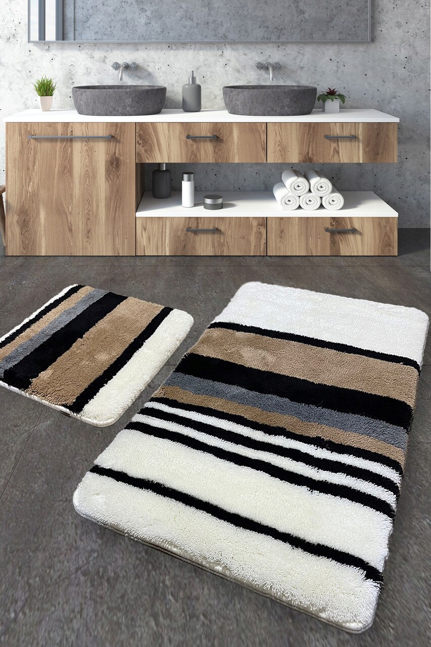 Set covorase de baie 2 piese, Chilai, Steingra, Acril, Ecru / Negru / Maro