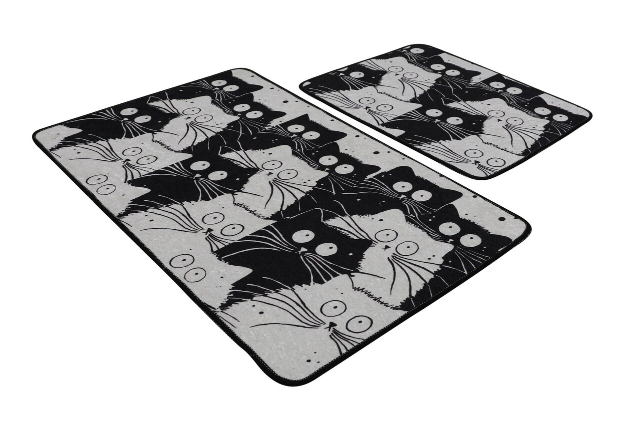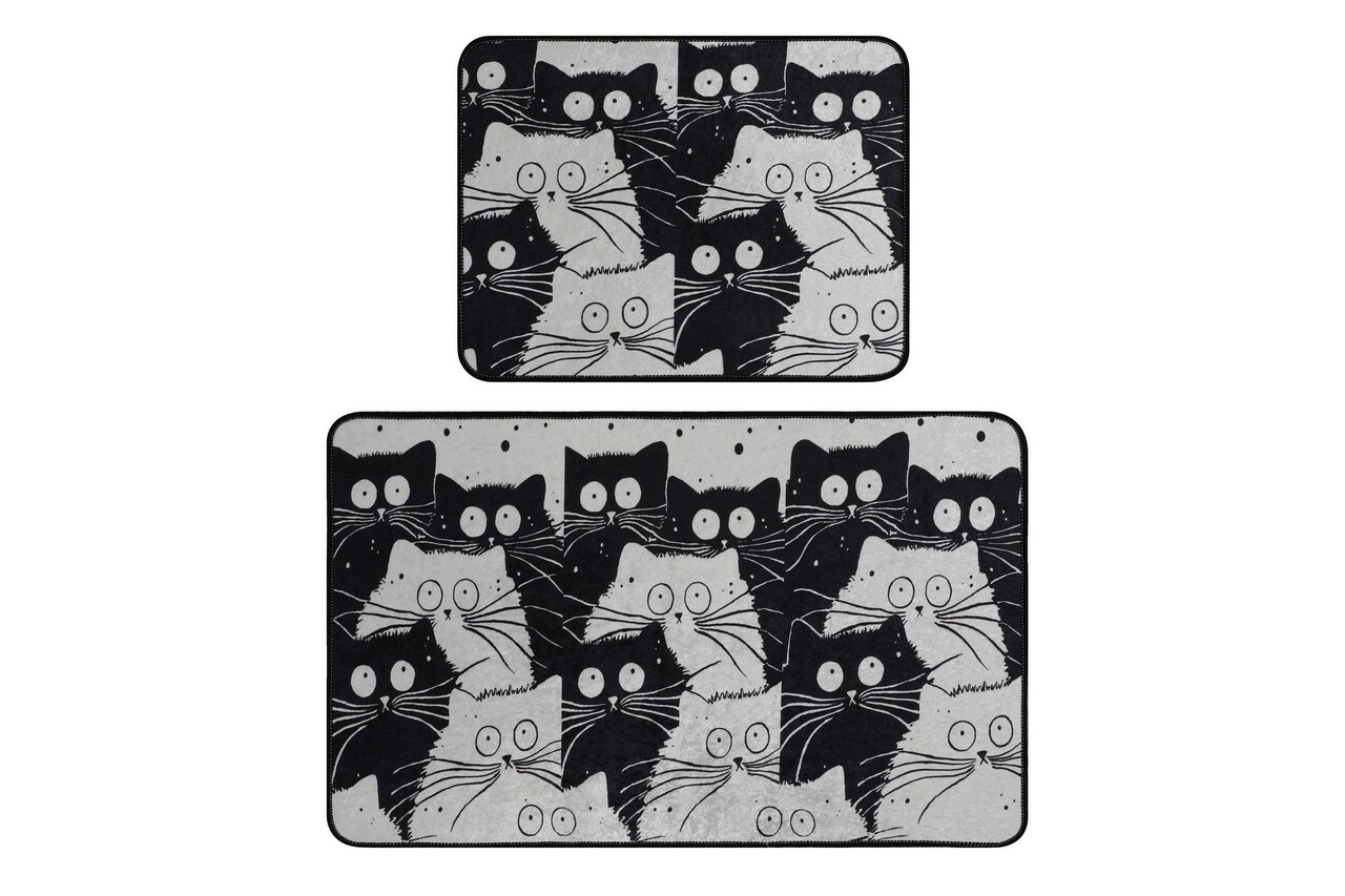 Set covorase de baie 2 piese, Chilai, White Cats , Catifea, Multicolor