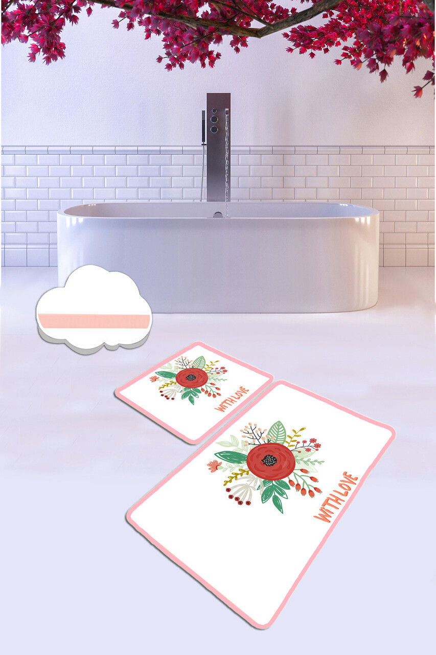 Set covorase de baie 2 piese, Chilai, With Love, Catifea, Multicolor