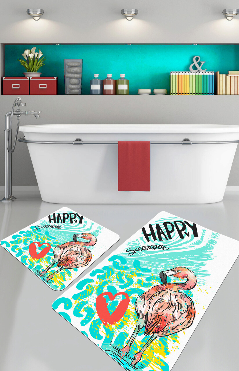 Set covorase de baie, L'essentiel Maison, Happy Flamingo, Poliester, Multicolor
