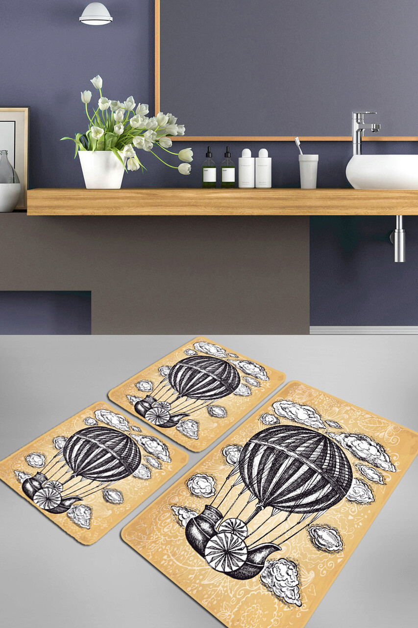 Set covorase de baie, L'essentiel Maison, Propeller, Poliester, Galben / Negru / Alb