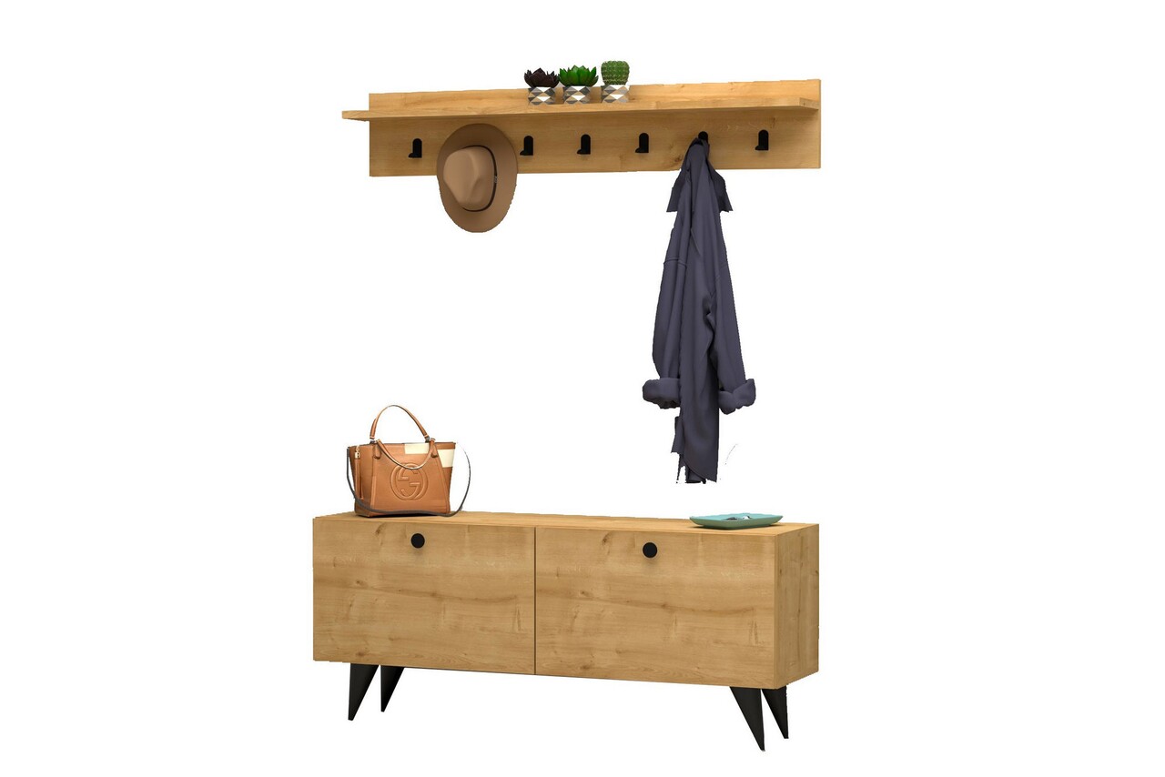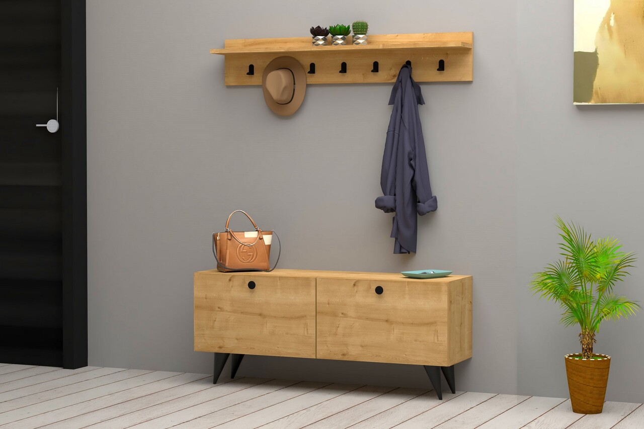 Set cuier cu pantofar, Puqa Design, Rupa, pal melaminat, stejar