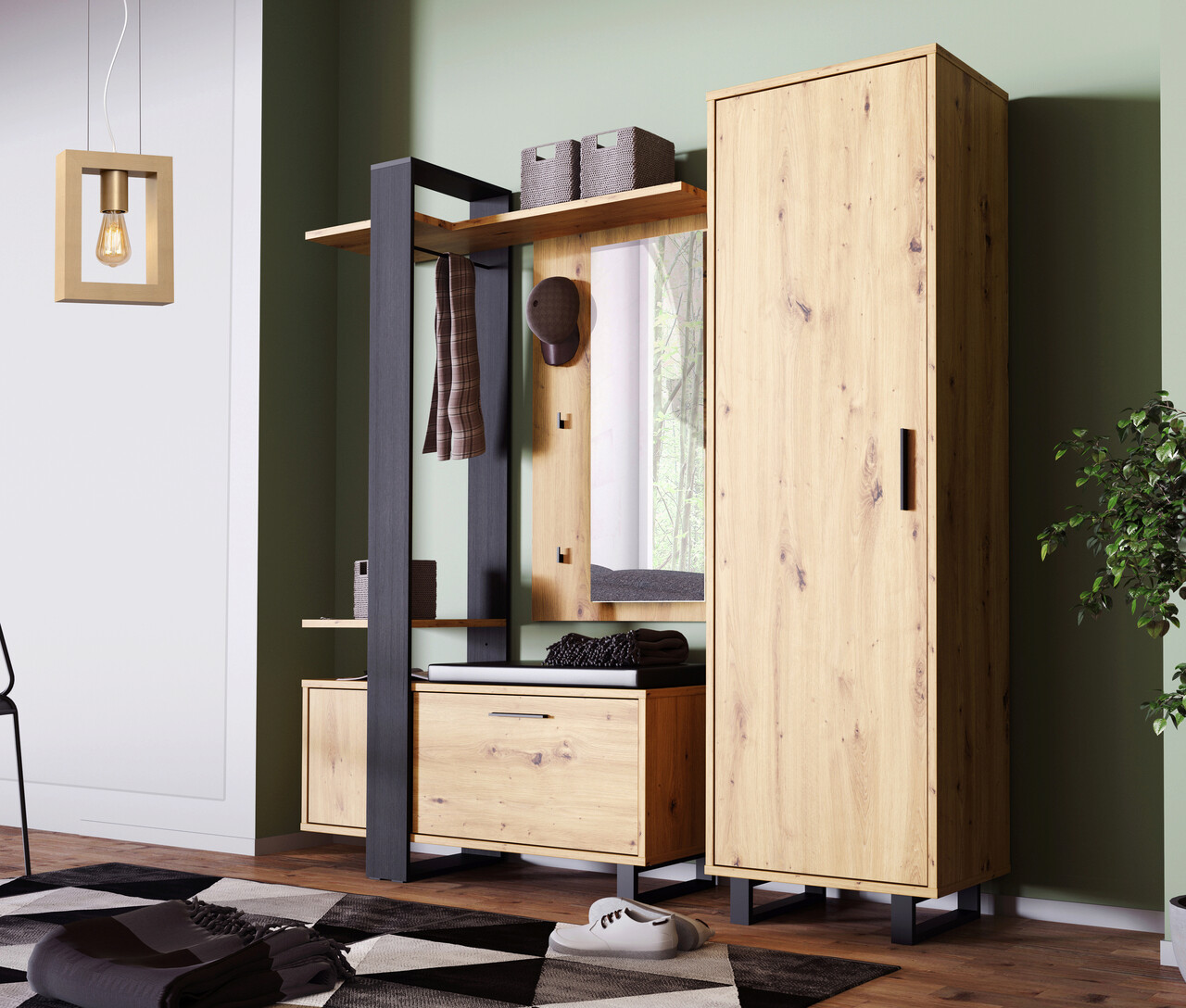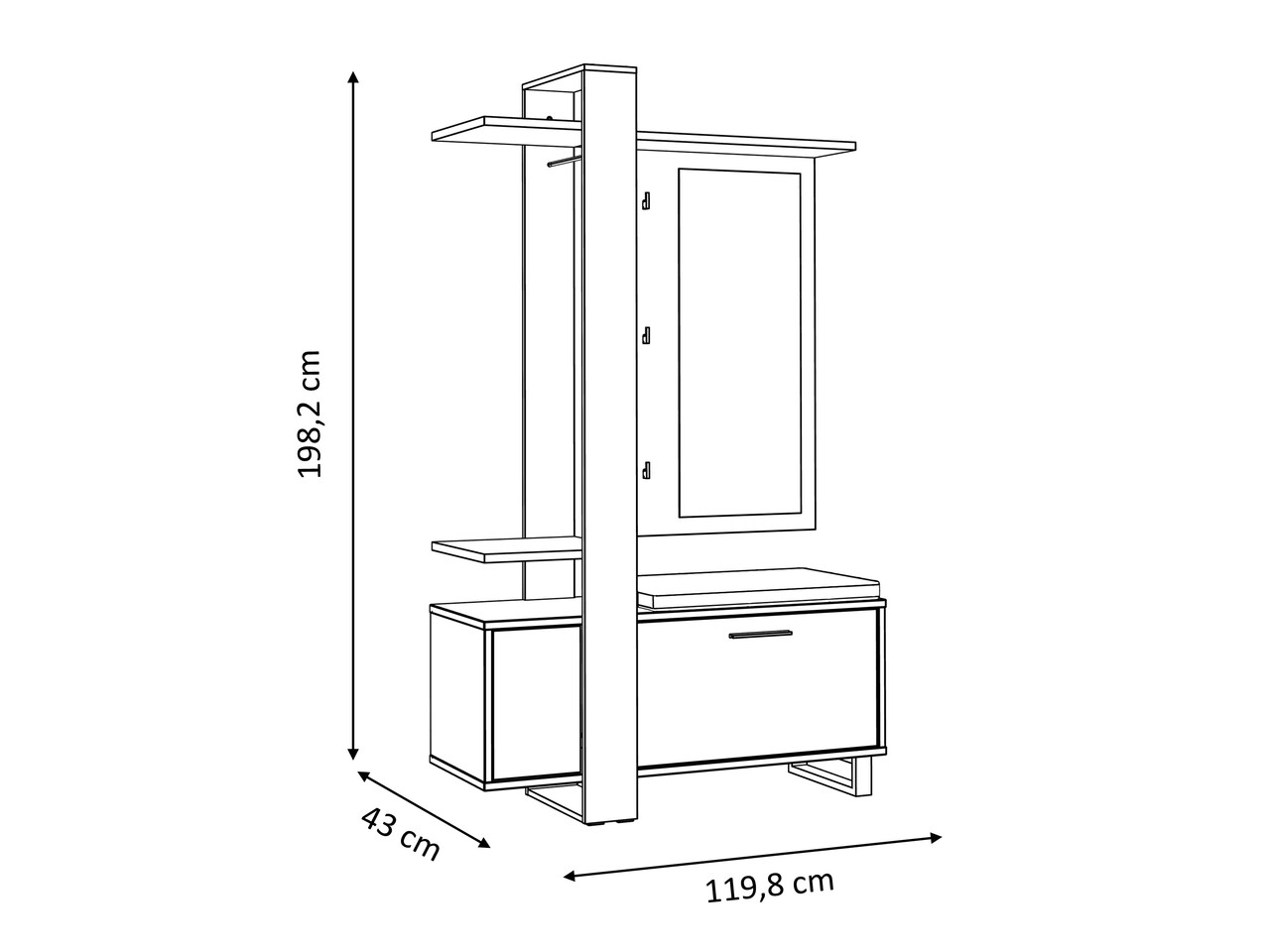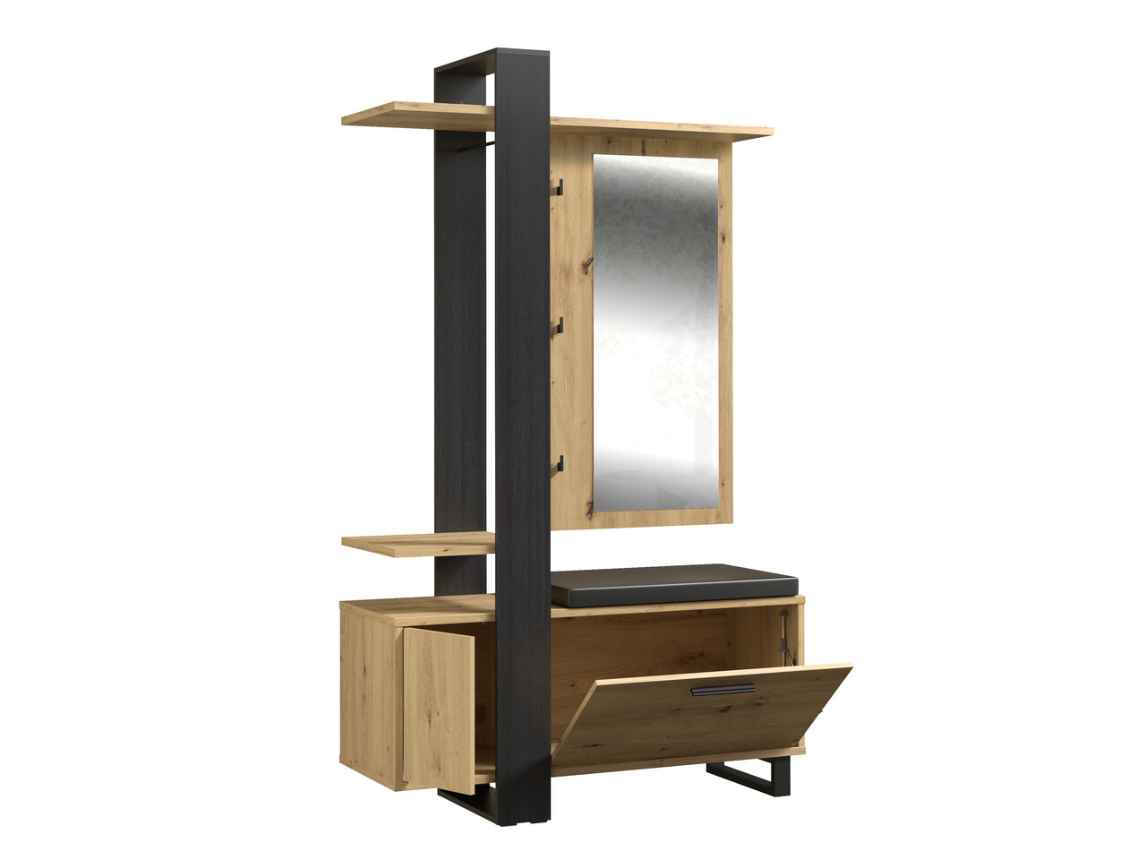 Set cuier si pantofar Mill, Bedora, 119.8x43x198.2 cm, PAL/plastic, stejar/negru