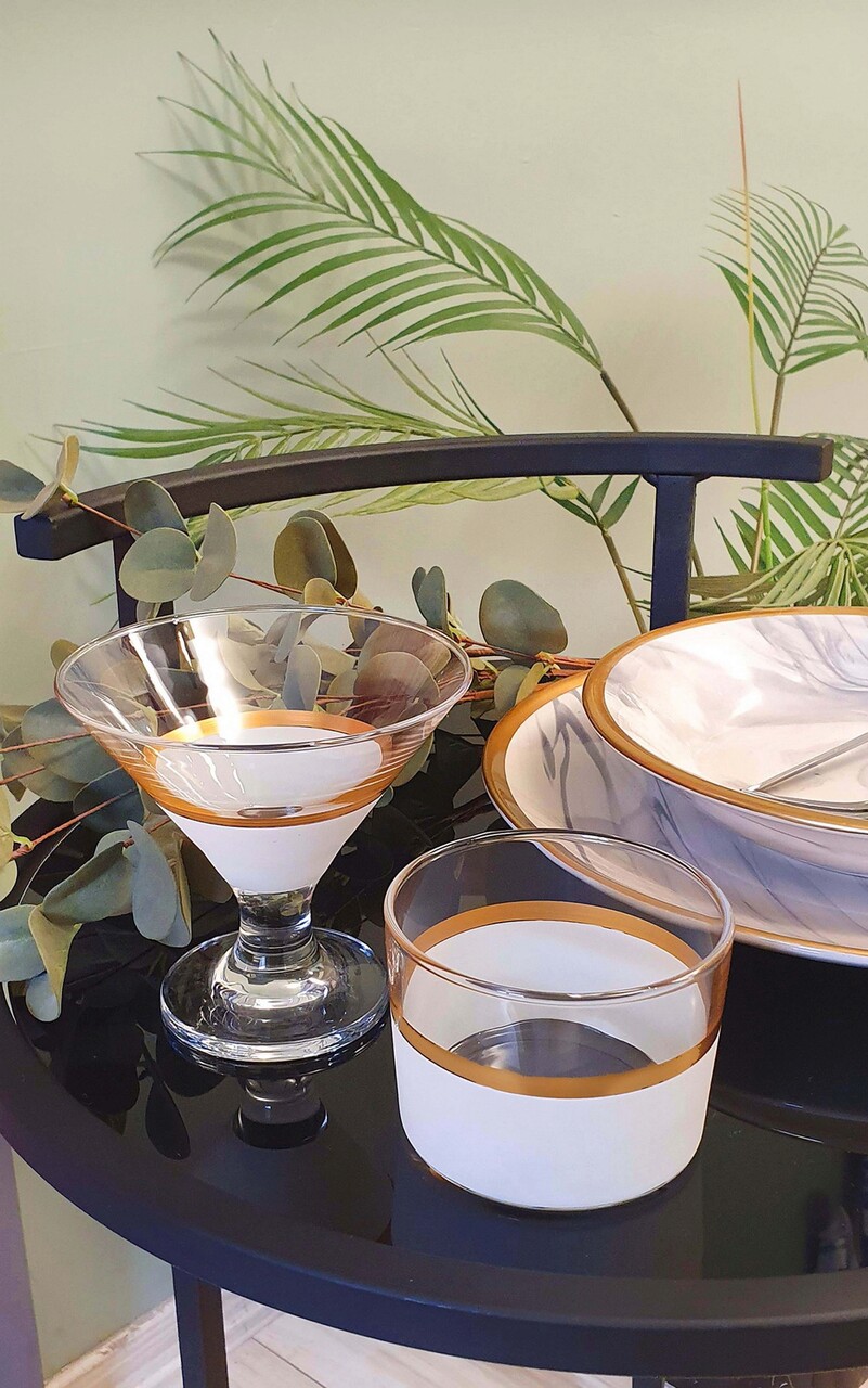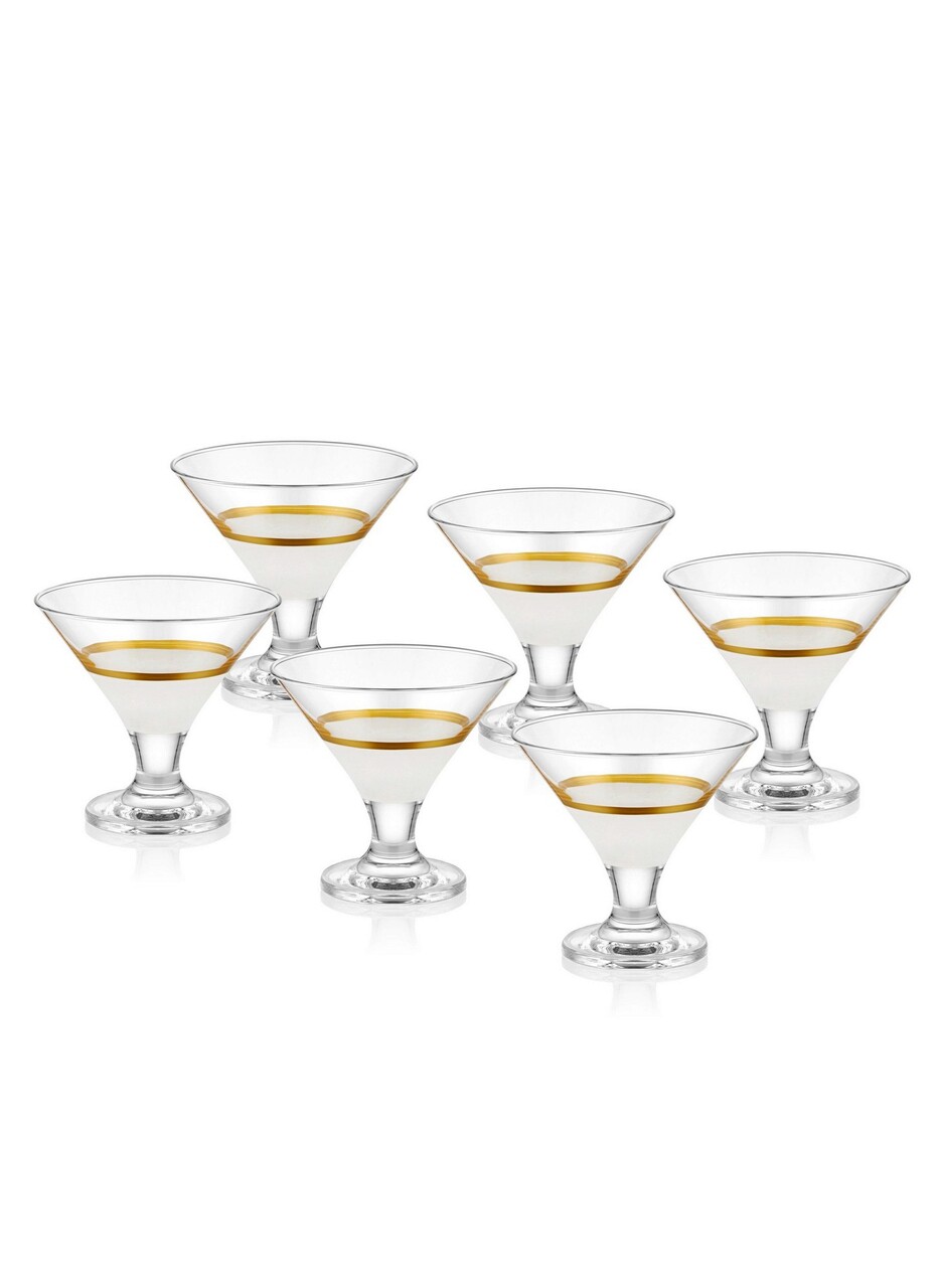 Set cupe pentru inghetata, Mia, 742TMA4764, Sticla, Alb/Auriu