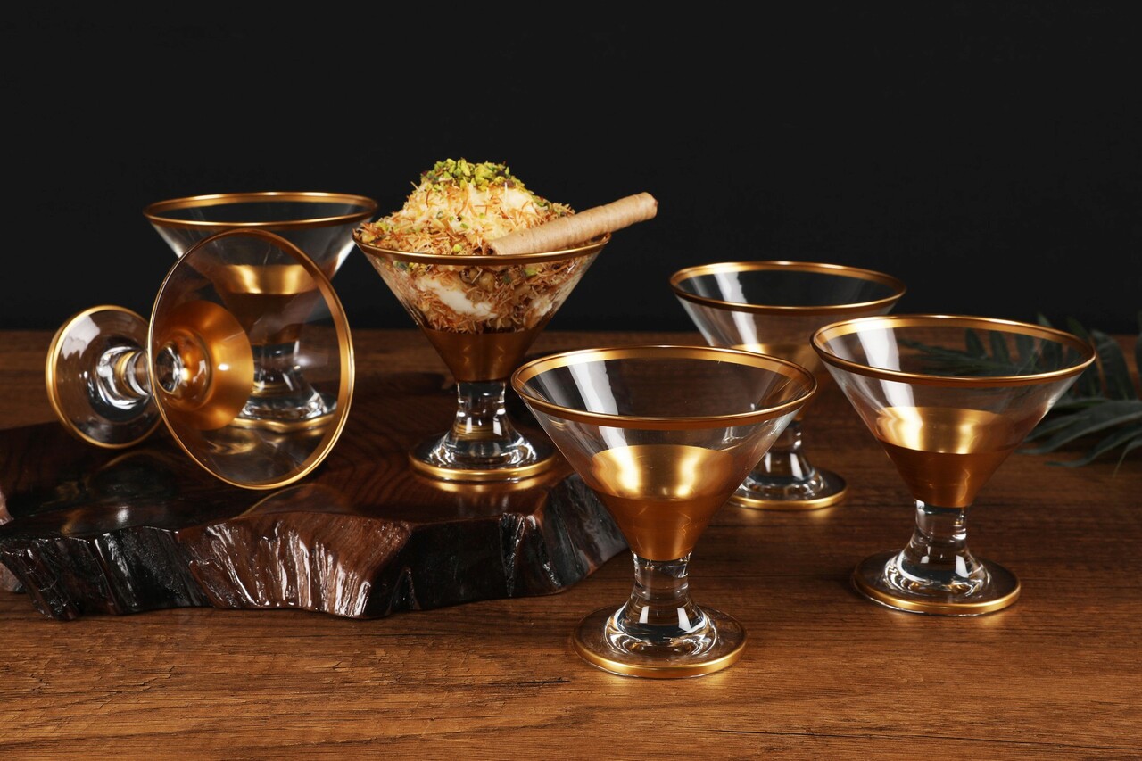 Set cupe pentru inghetata, Mia, 742TMA4772, Sticla, Auriu