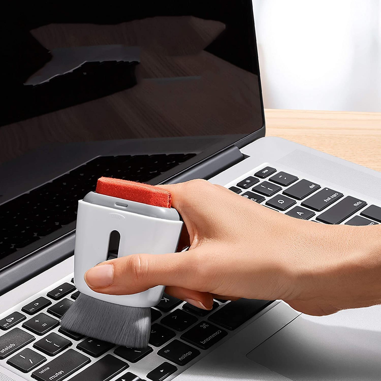 Setul pentru curatare, Marca Oxo Good Grips, Lungime7 cm, A fost creat pentru a mentine laptopurile si tabletele curate, Fara firimituri, Urme de degete, Praf sau alte resturi.Este un instrument cu doua fete care curata in profunzime aceste produse.