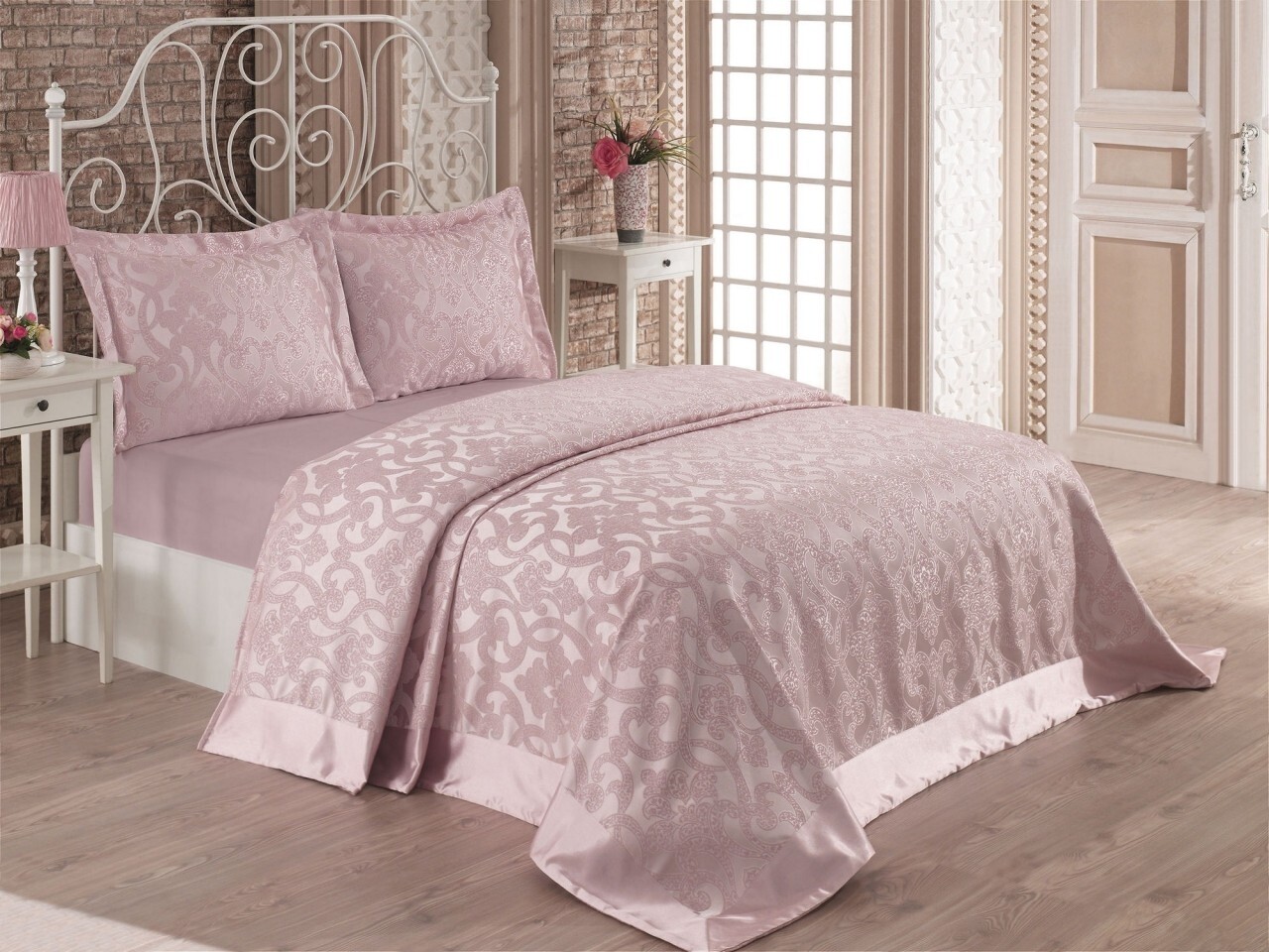 Set cuvertura de pat dubla, 3 piese, 60% bumbac si 40% poliester, Nazenin Home, Alona Powder