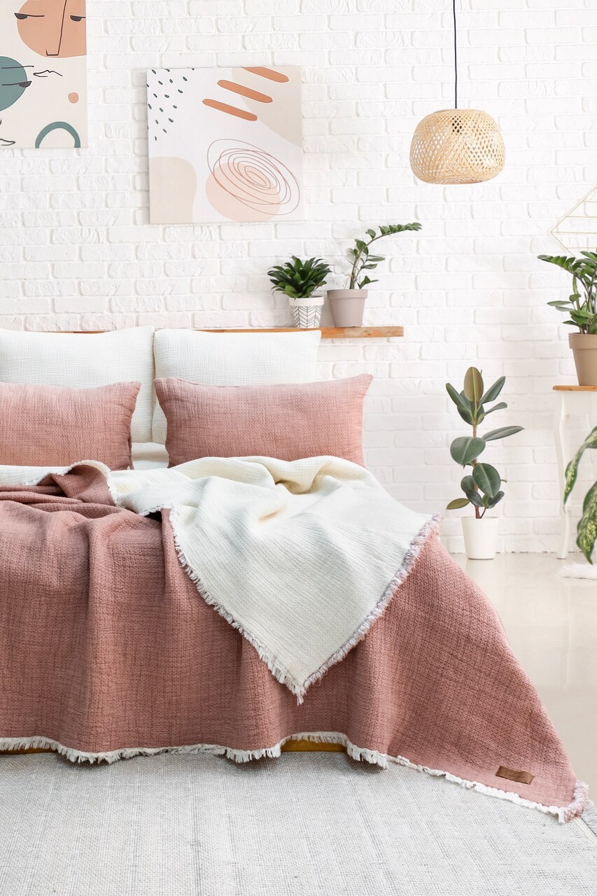 Set cuvertura de pat dubla 3 piese, Alda - Dusty Rose, Şaheser, Bumbac;Poliester