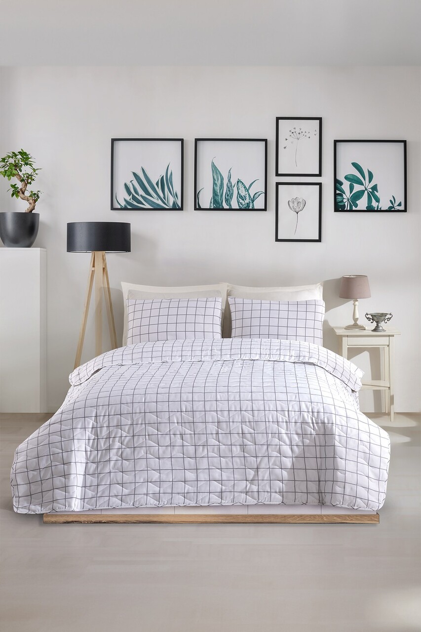 Set cuvertura de pat dubla 3 piese, Artus - Grey, Eponj Home, 65% bumbac/35% poliester
