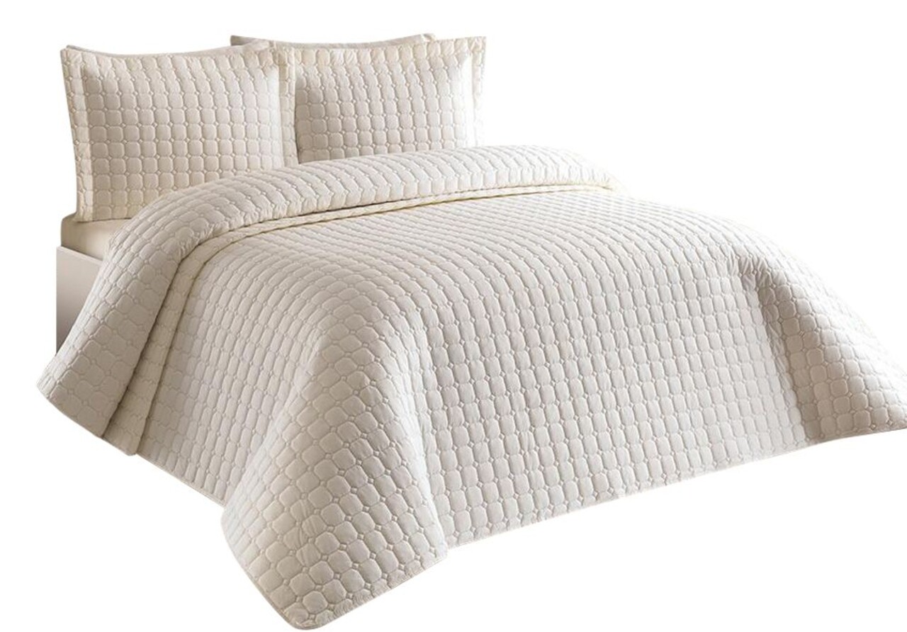 Set cuvertura de pat dubla 3 piese, Estiva - Cream, Dowry World, Bumbac
