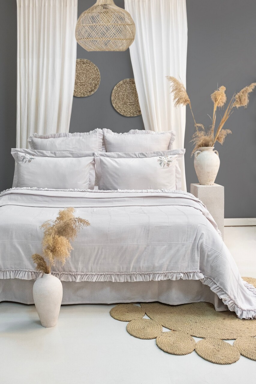 Set cuvertura de pat dubla 3 piese, Fiorella - Light Grey, Şaheser, Bumbac;Poliester