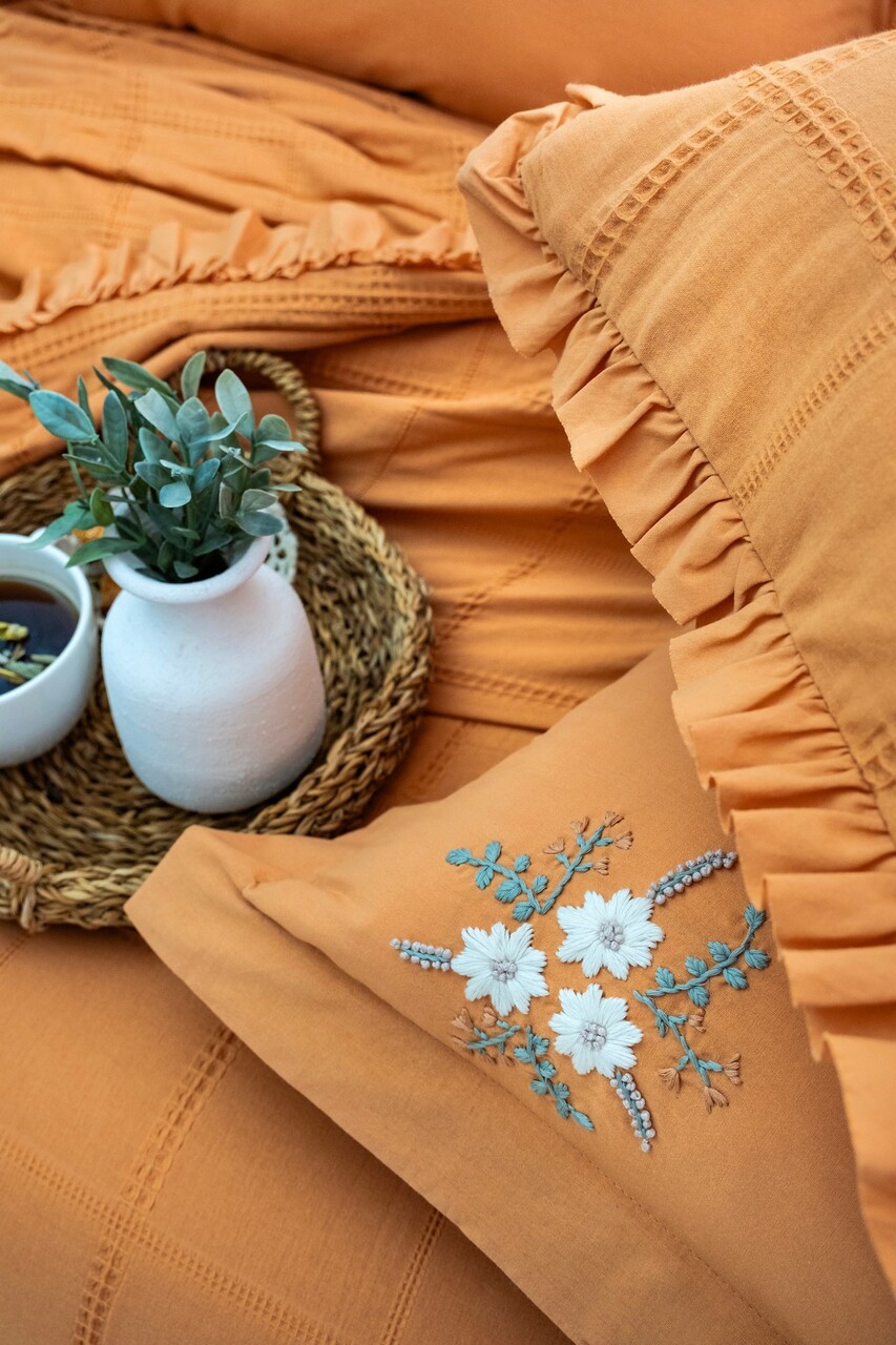 Set cuvertura de pat dubla 3 piese, Fiorella - Orange, Şaheser, Bumbac;Poliester