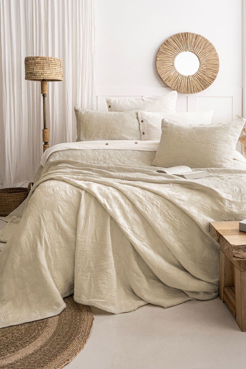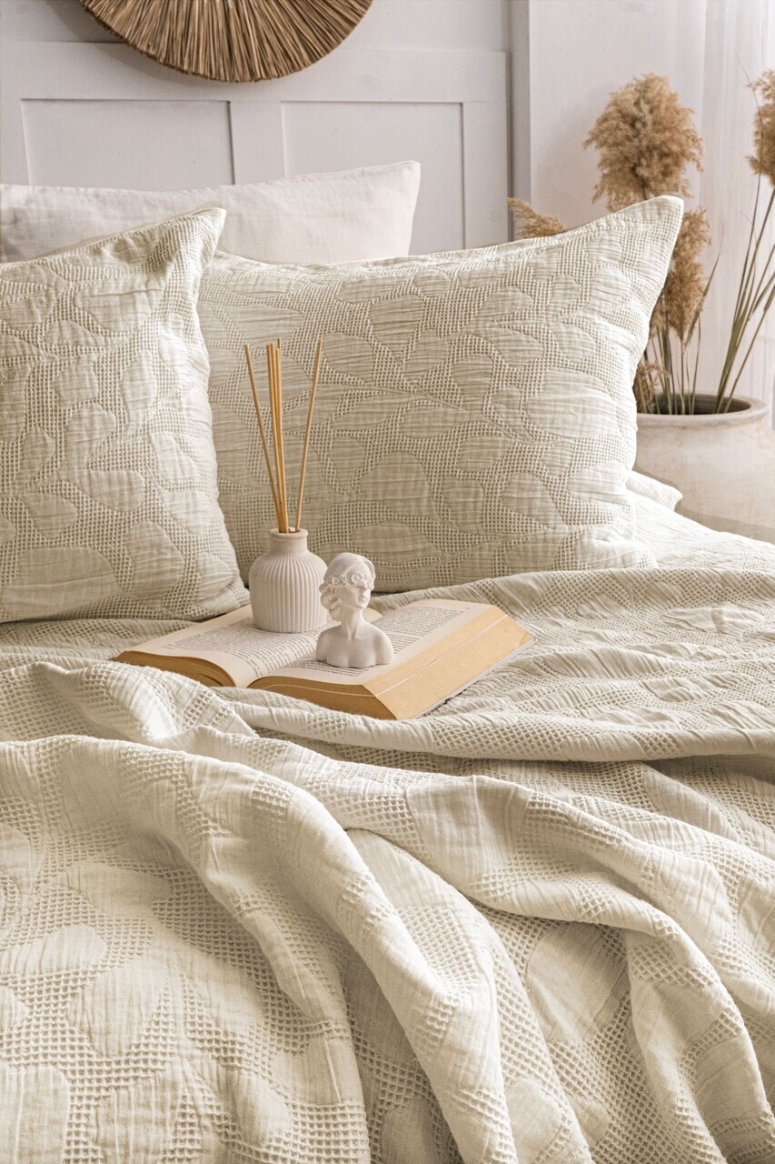 Set cuvertura de pat dubla 3 piese, L'essentiel Maison, Bambi, Bumbac , Bej