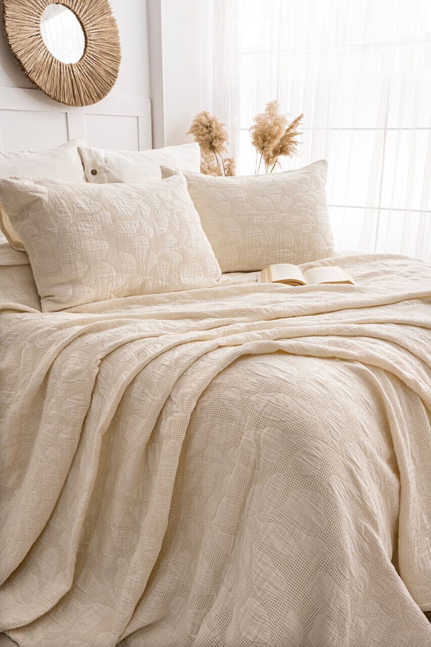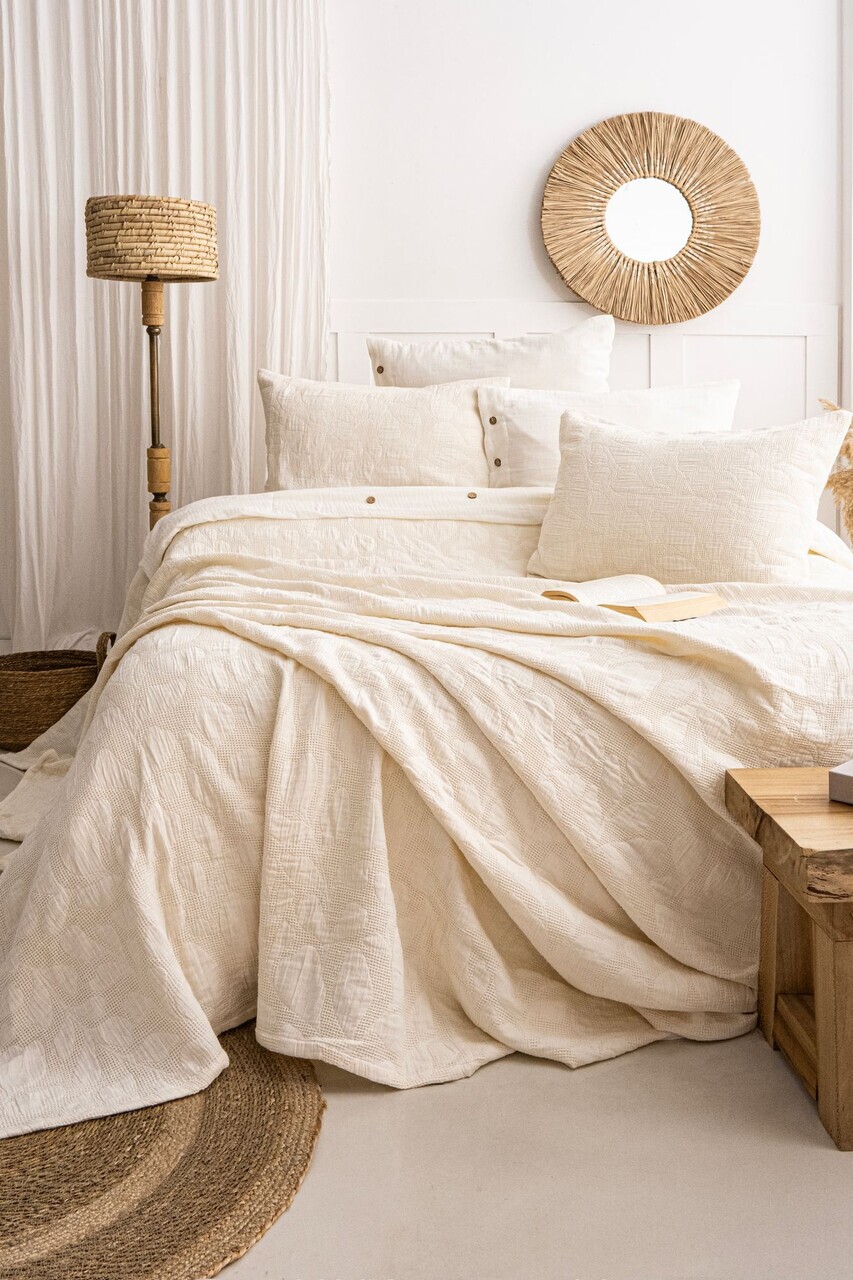 Set cuvertura de pat dubla 3 piese, L'essentiel Maison, Bambi, Bumbac, Crem