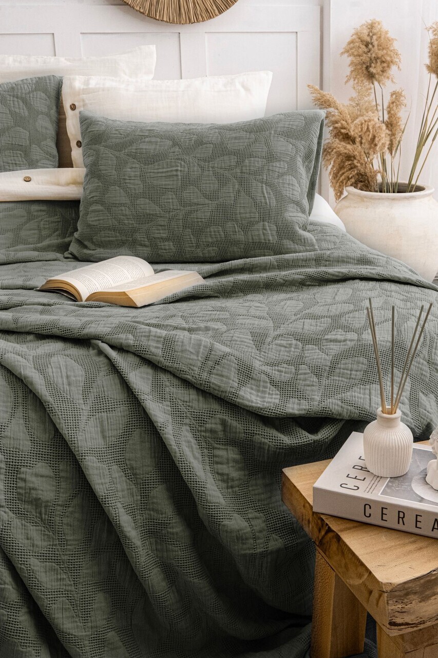 Set cuvertura de pat dubla 3 piese, L'essentiel Maison, Bambi, Bumbac, Verde