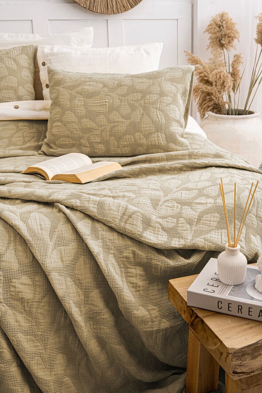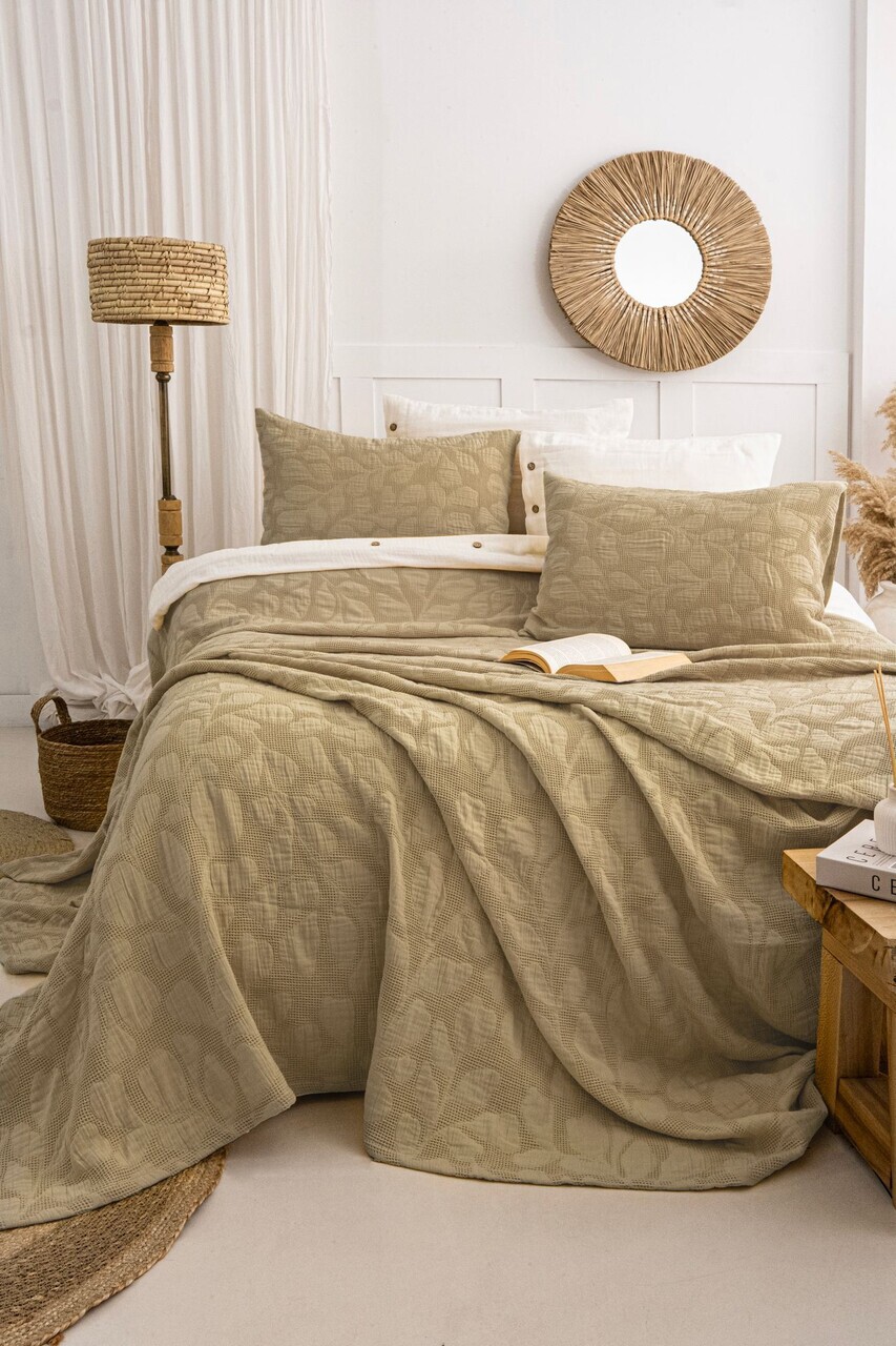 Set cuvertura de pat dubla 3 piese, L'essentiel Maison, Bambi, Bumbac, Kaki